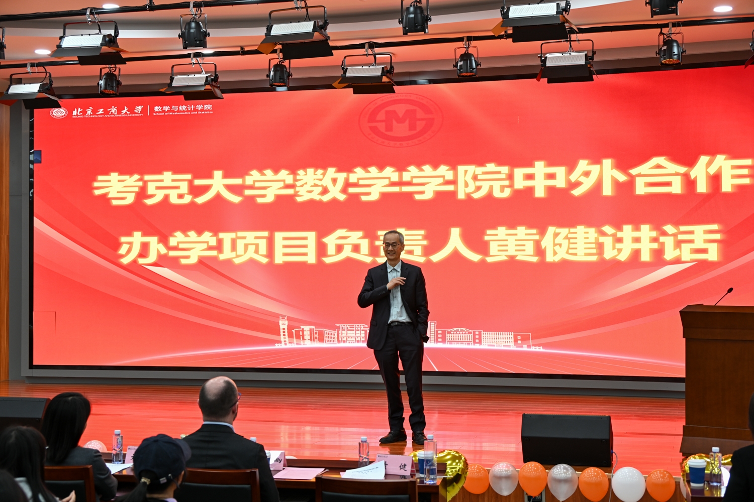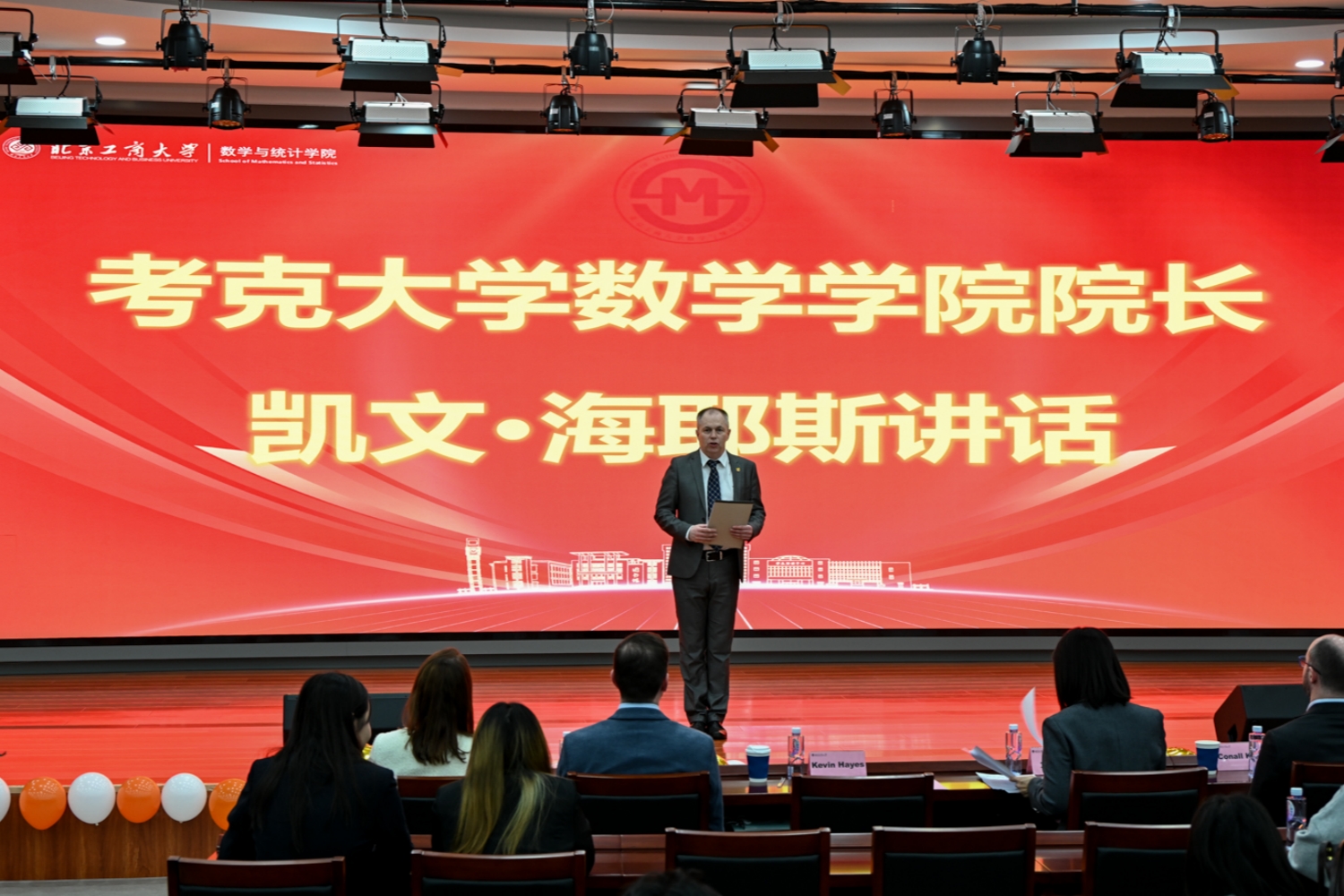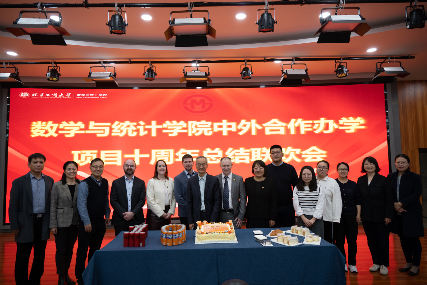 11月12日下午,中外合作办学项目十周年总结联欢会在良乡主校区求真学堂举行。学校副校长刘艳楠出席大会,考克大学数学学院院长凯文·海耶斯,办公室主任凯瑟琳·马奎尔,教师代表埃里克·沃尔斯廷斯基、康纳尔·凯利、黄健,考克大学中国办公室刘畅、王秋楠,国际交流与合作处处长贺冬萌、数学与统计学院领导班子、教师代表和应用统计(中外)班23级、24级本科生参加活动。活动由数学与统计学院党委书记周艳杰、应统 24(中外)班学生魏博、张清桠主持。