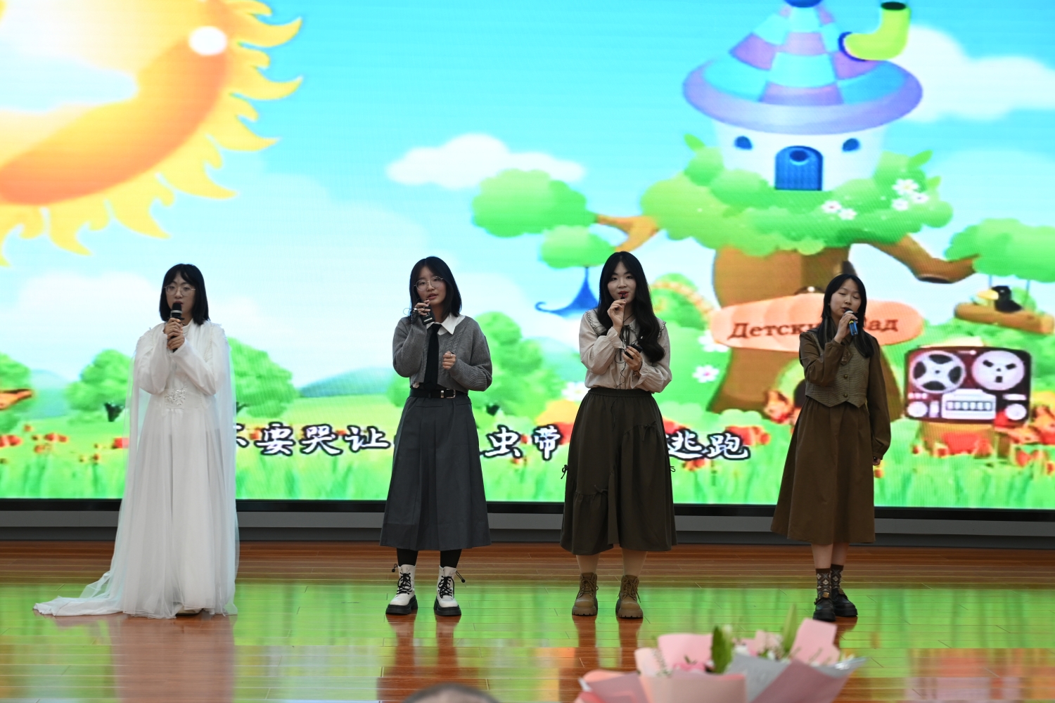 随后举行师生联欢。谭雨宸演唱旋律优美的歌曲《A thousand years》,随后,古筝独奏《春到拉萨》悠扬奏响,顾佳铭用琴音将众人带入美丽的拉萨之春,传递出跨越国界的友谊与和平愿景。由张馨莹演唱的《love yourself》,通过励志主题和动感旋律,展现了北工商学子的自信风采,再次将气氛推向高潮。2020届毕业生常可潆朗诵的《精算筑梦·十载辉煌》,深情表达了对项目十年岁月的感悟和对未来发展的美好祝愿;张清桠同学朗诵的《十年华章,共谱辉煌》表达了在中外办学项目的培养下,学子们绽放青春华章,书写灿烂明天的壮志。杨添乐等同学合唱《稻香》,在悠扬的歌声中,学生代表为考克大学教师送上鲜花和礼物,再次对他们的到来表示欢迎。