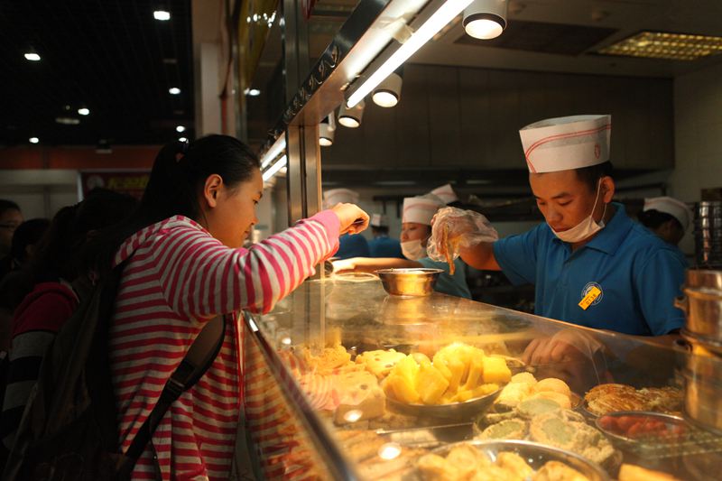 虽然食堂集中用餐人数增加,备餐量增大,上班时间提前,但是相关工作人员并没有放低服务标准,每一位员工更加细致。后勤管理处饮食科食堂窗口的郑师傅对记者说:“虽然手头上的工作要快,但是我们会像对待自己的孩子一样对待学生,即使粥再烫,我们也要拿稳,小心放到盘子上,决不能手忙脚乱的烫到你们。”刷碗部的陈阿姨说道:“盘子再多,我们的洗碗步骤也不会减少,尤其是消毒工作更是一点都不能松懈,碗刷好了,学生们也吃得安心啊。”