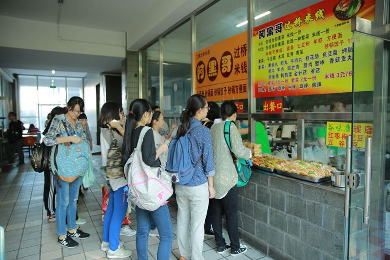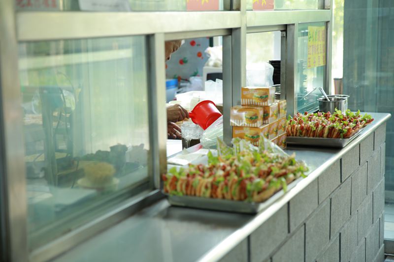 然而仅是早餐种类和数量上的增多是不够的。记者了解到,考虑同学不同时间段的用餐需求,食堂的工作人员每天凌晨4:30就开始准备早饭;值班经理也在同一时间到达学校进行安全把关。负责打饭的工作人员每天提前10分钟上岗,并在高峰期新增两个窗口,保证6个队伍同时可以购买早餐,节约排队时间。张小奕同学说,“最开始的时候,只要稍微晚起了一会,就会看见窗口的队伍非常长,经常排到自己的时候有些爱吃的已经没有了。还好食堂及时调整,不仅吃到了想吃的东西,而且有足够的时间做课前准备。”15级新生李楠也兴奋地告诉记者,“以前每天晨跑之后就要赶紧跑去食堂,一个人排队,一个人占好位置,现在就方便许多,食堂从6:40就可以就餐,部分同学选择晨跑之前吃饭,两个就餐高峰分开,人少了许多,也不用再去占座位了。” 不仅如此,为了方便教学区晨读晨练的学生用餐后直接上课,后勤处特别在师生服务中心食堂、文二楼一层同时为同学们准备了早餐。