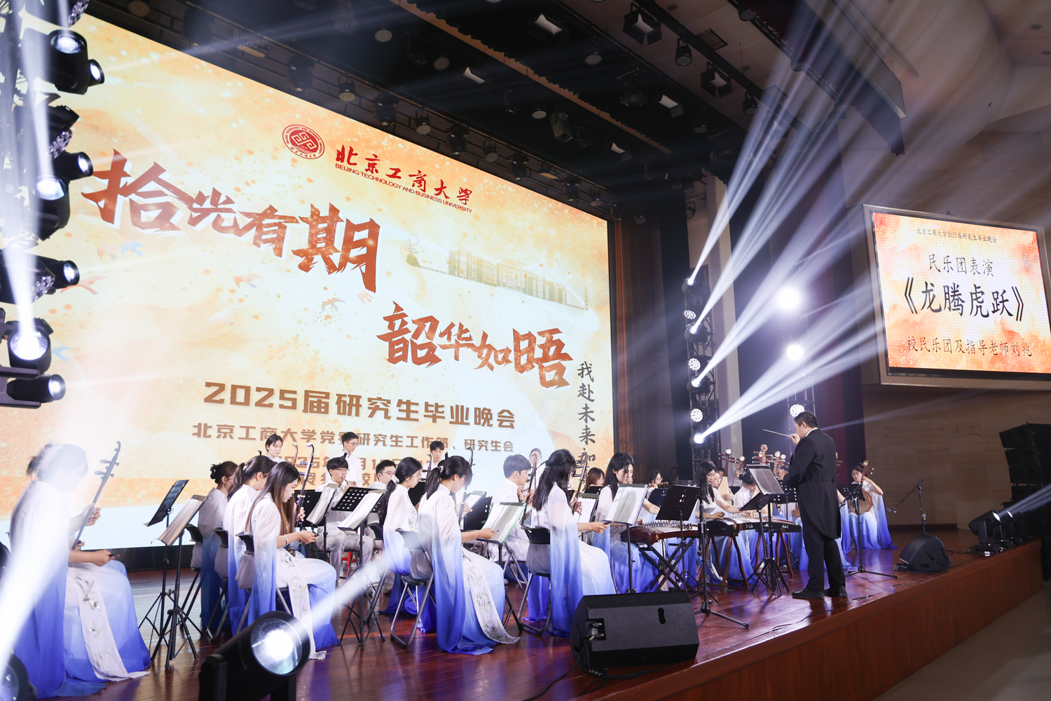 6月19日晚,学校在良乡校区举行“拾光有期·韶华如晤”2025届研究生毕业晚会。学校党委副书记李中奇、校友会办公室主任张春萍、党委研究生工作部部长郭新愿、马克思主义学院党总支书记任金晶、党委研究生工作部副部长兼研究生院副院长张倩、研究生院副院长申现宝、保卫处副处长卢灿宽、公共事务处副处长马腾、商学院党委副书记张悦、数学与统计学院党委副书记毕平平、校民乐团指导教师刘兆以及各学院辅导员、研究生代表等600余人共同观看晚会。