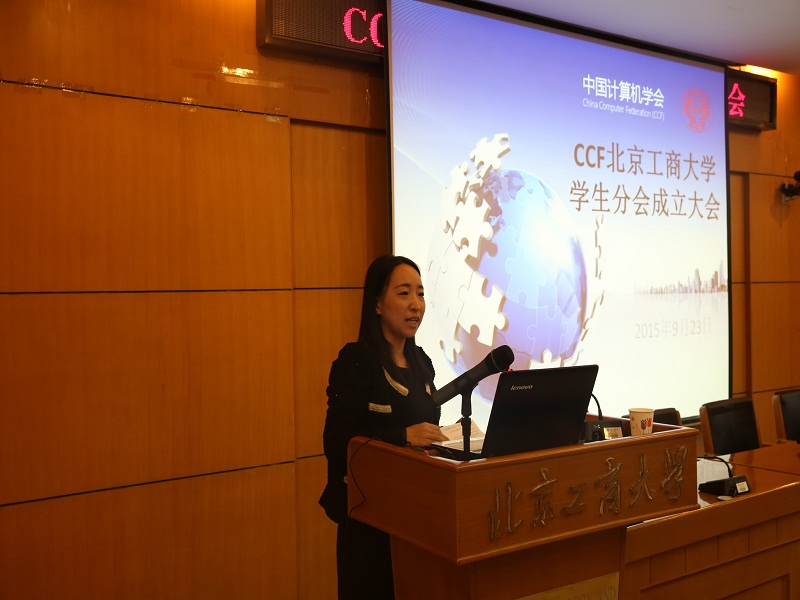 戴丽霞女士代表CCF致辞,介绍了CCF的成立、发展和规模,阐述了CCF的三大特质:专业、专业人士和社会责任,强调了CCF这个平台对我国计算机事业发展的积极作用。于汉超博士以“赢在起跑线上”为题,重点介绍了CCF作为IT类专业学生的加速器的积极作用。同学们通过CCF这个广阔平台,可以与国内外高水平大学学生进行深入交流,收获专业水平的进步、自我能力的拓展以及更多友情。