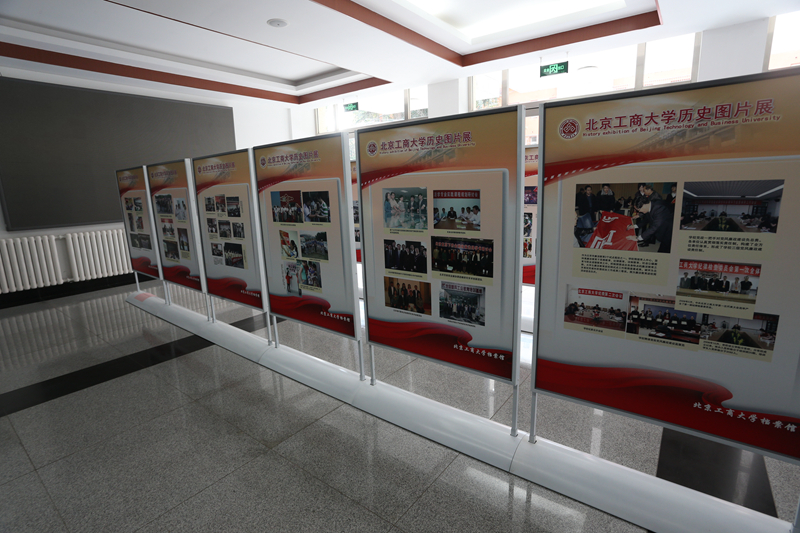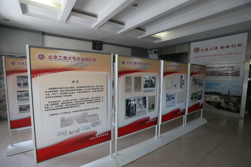 学校六十五华诞之际,为铭记学校发展的轨迹与成就,档案馆在阜成路校区教一楼和教二楼大厅举办校史图片展。