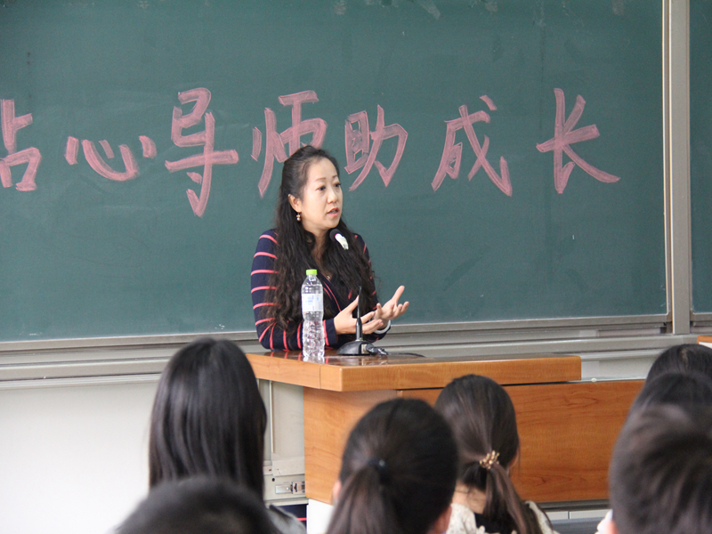 党总支书记刘红艳回顾了实行本科生导师制五年来,从实施到发展的过程,以及在学校“十三五”规划人才培养目标下所面临的挑战与创新。她希望导师们着重在专业、学业、就业方面给予学生成长成才的过程引导与目标引导,尤其在英语专业类考试和竞赛方面,要求导师进行针对性指导,鼓励学生积极与自己的导师多维度对话。最后,她谈到多年来导师恳谈会已成为外语师生共同的节日,希望导师们群策群力,投入导师工作,因材施教,师生携手,成就全方位多元化的外语人才。