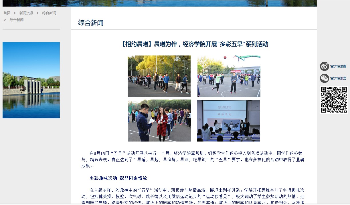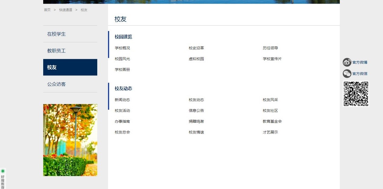 此外,在更新各二级页面内容的同时,在页面左侧下方增加学校风景图片,采用图文并茂的形式构建各网站板块。