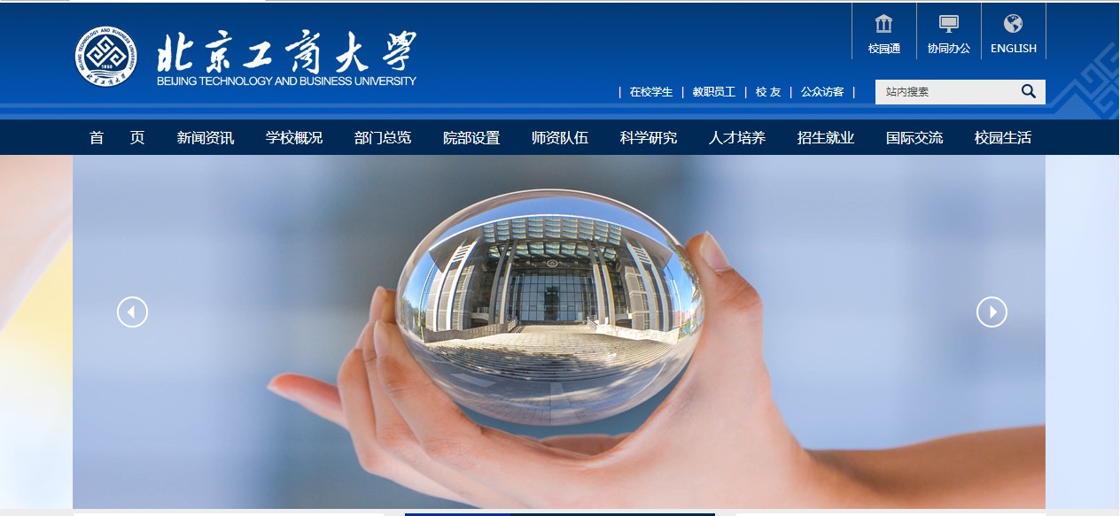 公众访客入口包含认识工商、招生信息、学校资源、学生活动、奖励资助、国际合作交流等板块。