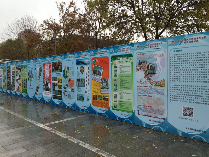 为扩大优秀学生基层组织评选的影响力,在学生中营造学先进、做榜样的良好氛围,学生处通过线下户外展示、线上微信推送的方式,自10月中旬开始集中宣传,将各班级、宿舍的事迹制作成展板,并利用学生处的微信公众号首次将线上投票环节纳入评选。各个班级、宿舍根据微信投票情况,获得场外观众投票分。场外观众投票得分在最终总成绩中占10%的权重。