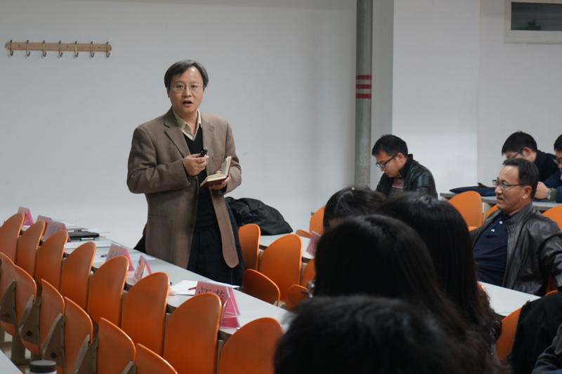 学院院长徐宝财做总结发言。他鼓励青年教师多参与,希望有更多的老师参与教学优秀奖的评选工作,通过参与评选提高教学质量的同时为学院争得荣誉。