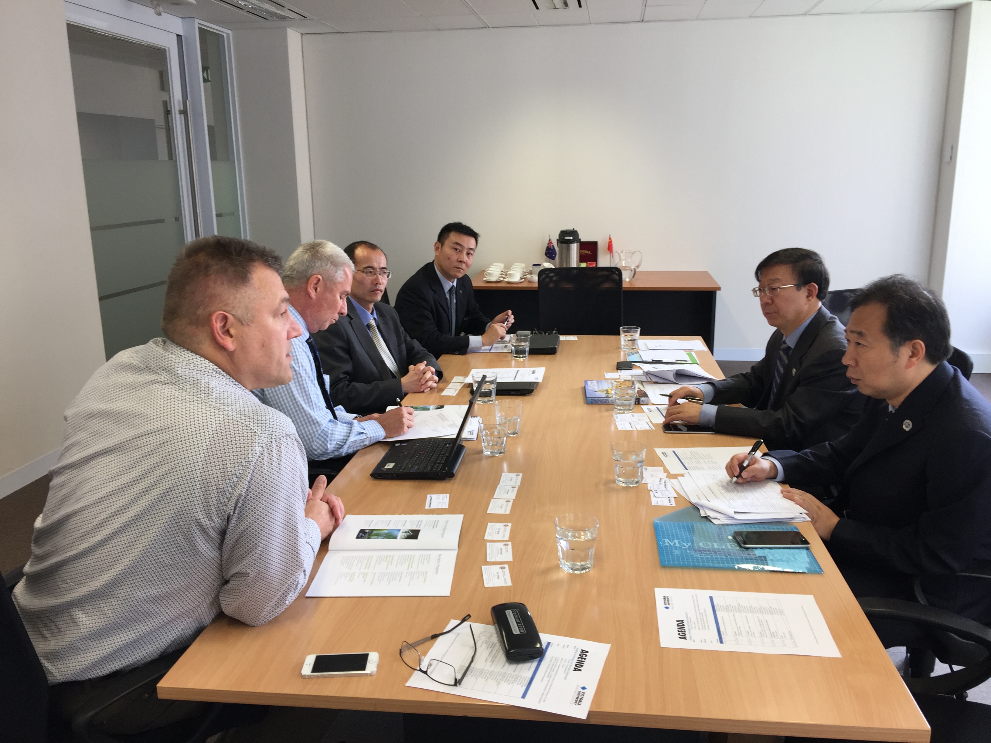 在澳大利亚维多利亚大学,孙宝国校长与该校副校长史蒂夫•贝里奇(Steve Berridge)进行了会见。双方就两校的总体情况、学科设置以及国际化方面的情况进行了介绍,并与工学和理学学部IT学科负责人苗宇教授(Yu Miao)、学部食品学科负责人托尔多•瓦西列维奇教授(Todor Vasiljevic)、国际发展部主任瑞斯•威廉斯(Rhys Williams)、区域招生经理岳涛(George Yue)就两校在学生交换、教师互派等方面开展合作进行了交流。