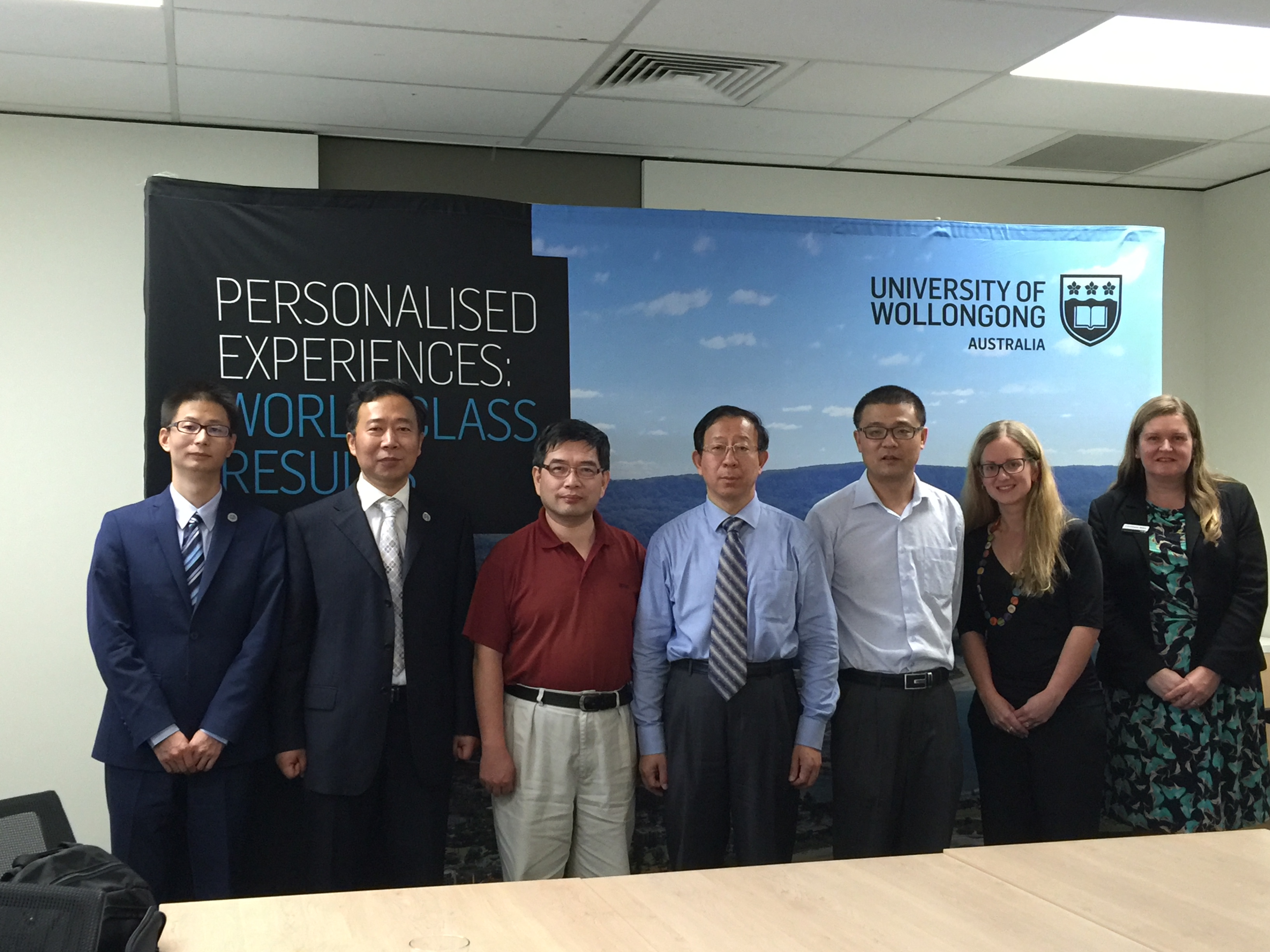 在澳大利亚卧龙岗大学,代表团一行分别与卧龙岗大学高级联络员(海外合作)孙洁(Jessica Sun)、国际项目和联络员维吉•瓦里丝(Vicky Wallace)、理学、医学和健康学学部卡伦•瓦尔顿教授(Prof.Karen Walton)和亚斯敏•普罗比斯特博士(Dr. Yasmin Probst)、工程和信息科学学部李宛清教授(Prof.Wanqing Li)和严俊博士(Dr.un Yan)进行了会谈。双方相互介绍了两校的基本情况和特色优势学科,并就两校在食品科学、计算机科学、信息工程等专业领域开展学生联合培养、科研合作、教师互派交流等合作项目进行了讨论。代表团还参观了卧龙岗大学的校园设施和大型考试中心等教学设施,详细了解了卧龙岗大学集中组织期末考试的政策和措施。