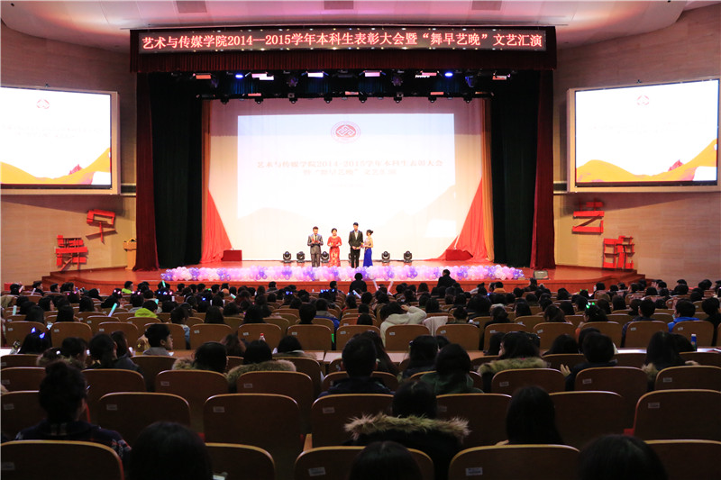 12月16日,艺术与传媒学院2014-2015学年本科生表彰大会暨“舞早艺晚”文艺汇演在良乡校区举行。学生处处长吕素香,学院党委书记林刚、副书记刘晶,班主任代表和辅导员,以及全体学生参加了大会。