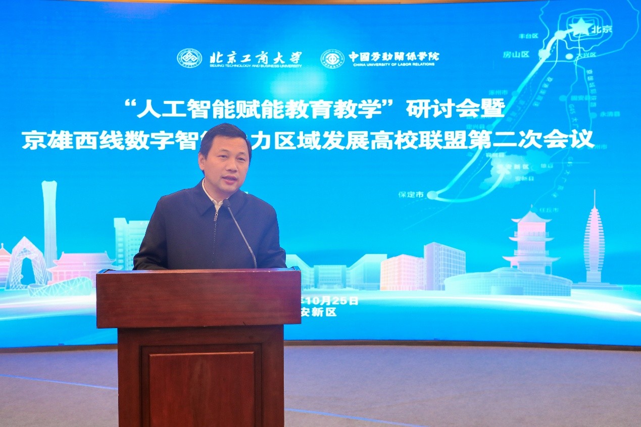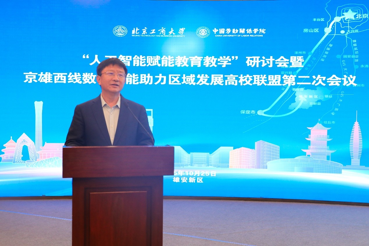 京雄西线数字智能助力区域发展高校联盟成立于2024年9月,由我校和中国劳动关系学院牵头发起,联合京雄西线房山区、丰台区、保定市等京津冀重要腹地的13所高校共同组建,旨在通过数字技术与智能手段,推动教育、产业、区域发展的深度融合。本次会议在巩固前期合作成果基础上,进一步聚焦人工智能赋能教育实践路径,推动京雄区域教育资源共享、科研成果转化与人才协同培养。