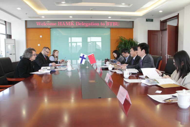 3月7日,芬兰哈姆理工学院全球教育中心主任安缇·埃索维塔(Antti Isoviita)一行2人来我校访问。受李朝鲜副校长委托,国际交流与合作处处长何明珂在阜成路校区会见了来访代表团一行。