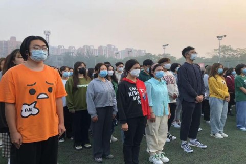 10月1日清晨,300多名少数民族学生、民兵连成员和在校生齐聚良乡校区柏林蓝操场,面向国旗肃立,行注目礼,伴随着冉冉升起的五星红旗,共同唱响雄壮的国歌,将最美好的祝福献给祖国母亲,发出强国有我的时代强音。