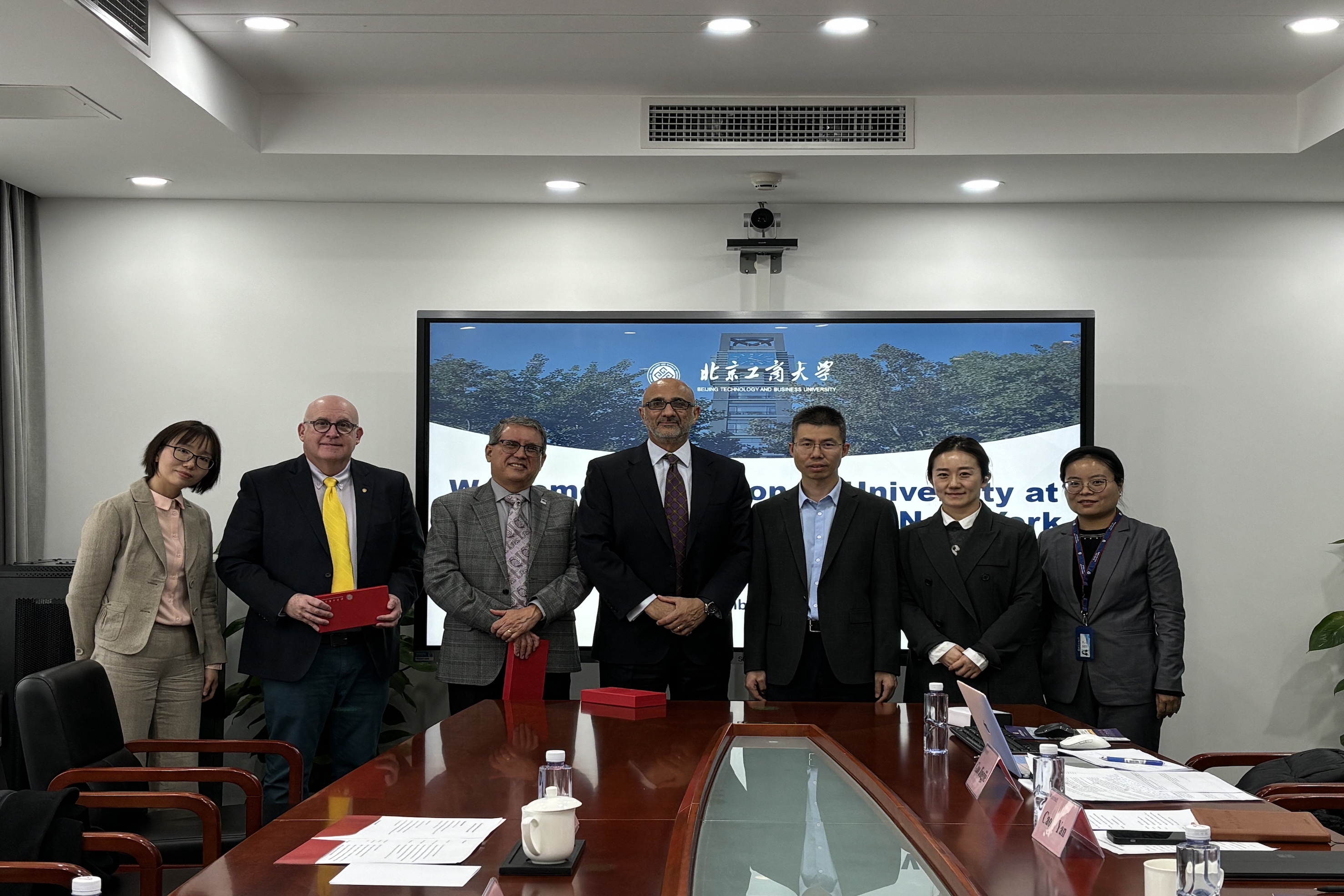 美国纽约州立奥尔巴尼大学副教务长兼国际教育学院院长吉尔伯特·巴尔韦德(Gilbert A. Valverde)、国际招生办公室主任约翰·波米(John D.Pomeroy)、中国办公室负责人王习文;我校国际交流与合作处副处长曹嬿,商学院会计专业负责人鲁昱参加了此次会谈。