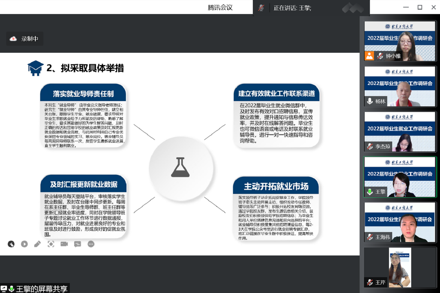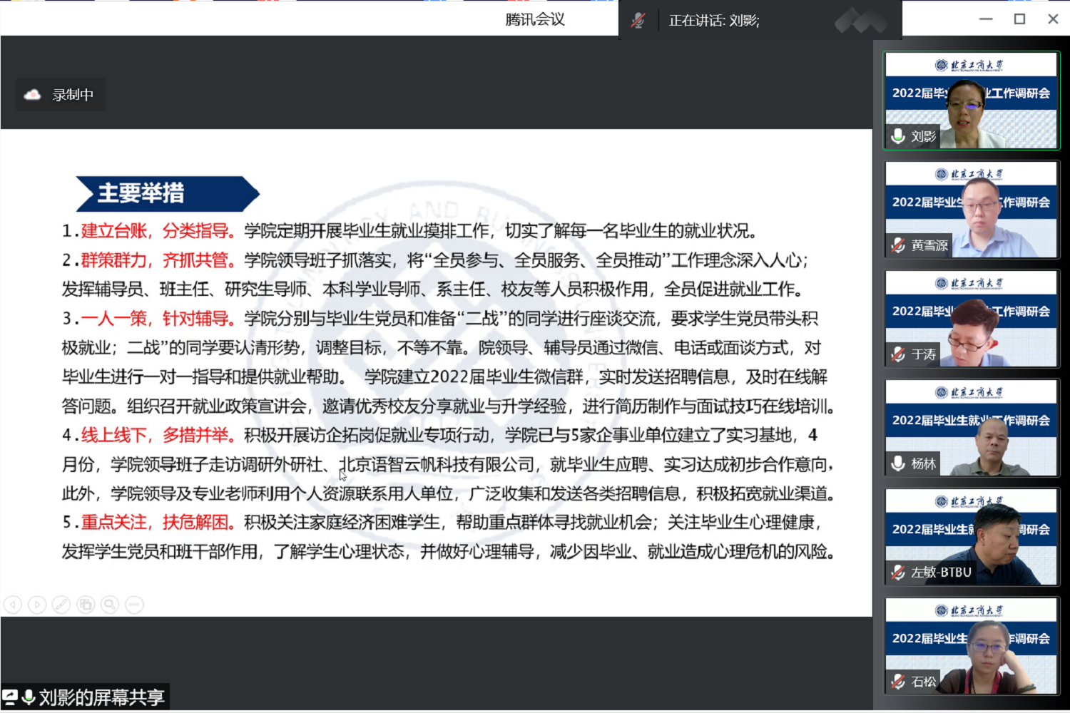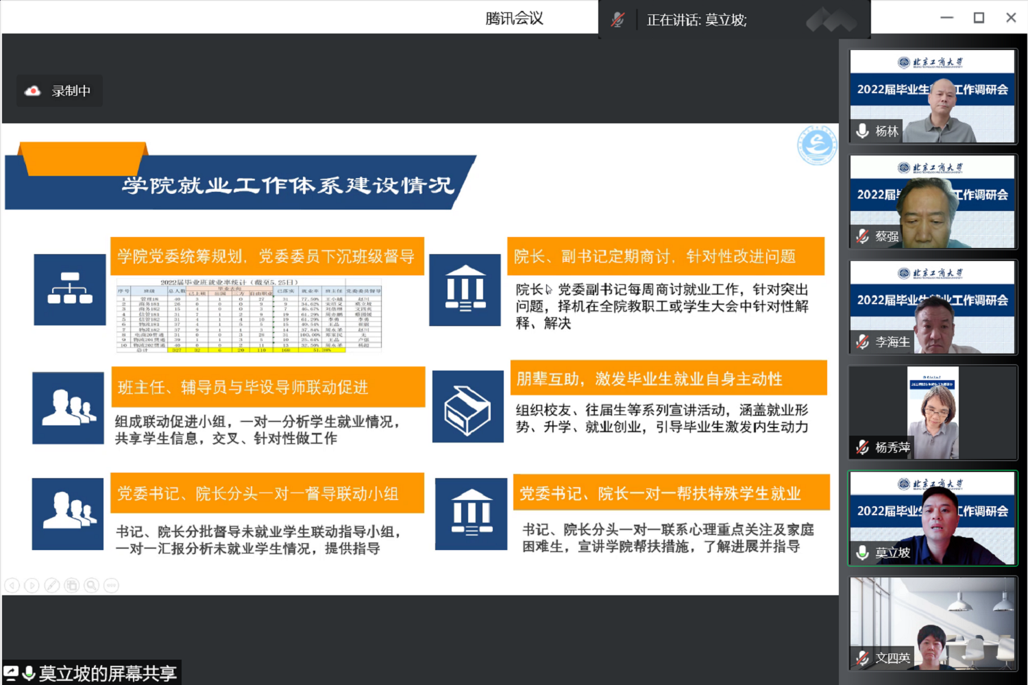 左敏充分肯定了各学院促进就业工作的经验和做法,并传达了全国高校毕业生就业创业工作视频会议精神。他强调,一要提高站位,高度重视就业工作。就业工作是“六稳”“六保”之首,也是检验人才培养质量的重要标志,大家在思想上要高度重视,强化责任落实,要进一步完善就业工作机制,形成全员合力,全力以赴做好就业这项根基工程。二要统筹谋划,形成就业与人才培养一体化的工作思路。以综合改革为契机,完成教学从知识传授型到能力获得型的转变,全方位提高毕业生就业核心竞争力。同时,将访企拓岗与就业、教学、科研、竞赛、实习实训实践等工作紧密结合,切实提升实践实习教育。三要正向引导,帮助学生形成正确的就业观、择业观。要充分认识当前就业形势和学生的就业行为,帮助毕业生建立合理的职业规划与就业期望,抓住机遇,用好政策,主动出击。四要精准帮扶,分类分层关爱特殊群体。要牢牢扛起家庭经济困难毕业生就业工作责任,开展“一对一”精准引导教育帮扶,降低因就业问题产生的代际贫困传递。五要做好统计核查,确保数据真实准确。各学院要掌握学生就业动态,及时维护系统数据,并在就业工作中严格执行教育部“四不准”要求。最后他感谢各学院在就业工作中付出,希望各学院在毕业季的关键冲刺时刻,要全员协力高质量完成2022届就业工作目标,有力度有温度的实现为色情片市培养适合社会经济发展需要的合格人才的最终目标。