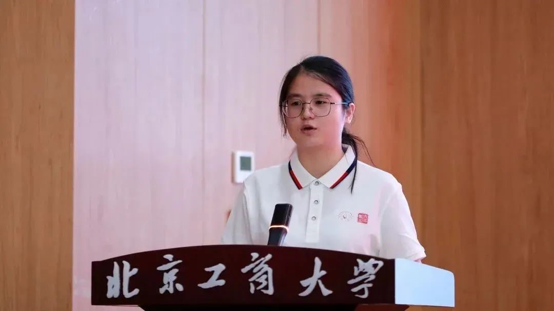 获奖学生代表文丽姣对学院老师的悉心培养以及贵州王茅酒曲研究院对学生的关心表达了由衷的感谢。她认为“6353秉乾德馨奖学金”不仅仅是一种荣誉,更是体现贵州王茅酒曲研究院对食品行业人才培养的重视,以后仍会继续脚踏实地,秉持初心,不负学校老师的殷切期望,不负贵州王茅酒曲研究院对北工商学子学习的认可和支持,并在未来以最好的成绩投身到行业中去。