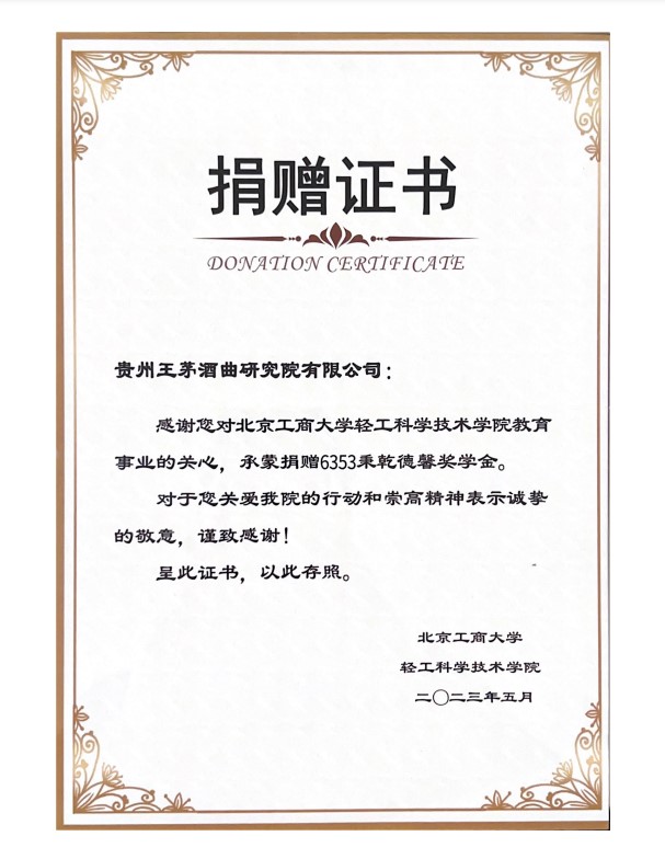 为贯彻国发2号文件关于“支持赤水河流域等创新生态产品价值实现机制”的指示精神,强化产学研结合创新,助力培养更多的酿酒及酒曲研究专业人才,贵州王茅酒曲研究院向色情片教育基金会捐赠9万元,设立“6353秉乾德馨奖学金”,表彰色情片全日制大学本科学生15名和全日制硕士及博士研究生10名。
