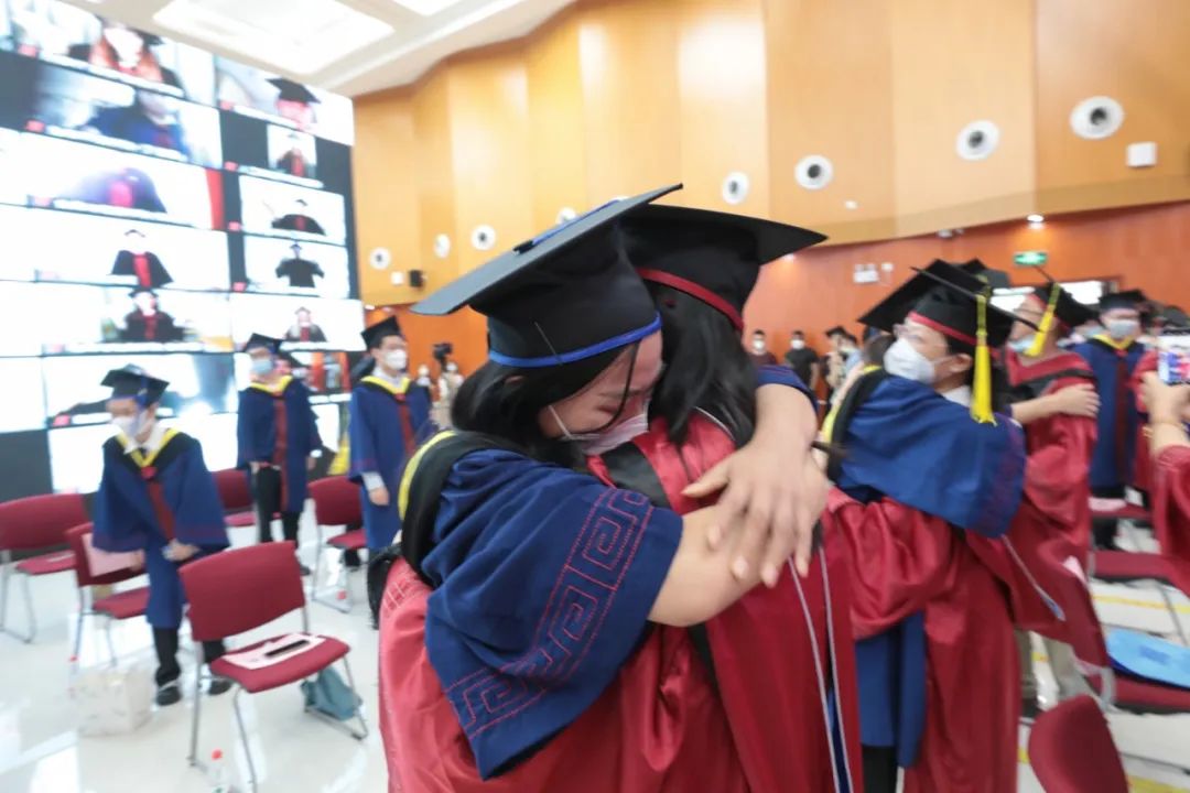 典礼现场气氛热烈感人,现场毕业生代表与各自的导师,热情相拥、含泪告别。亲爱的2022届毕业生们,愿在未来拼搏岁月里熠熠生辉,历尽千帆捷报频传,我们在北工商等你凯旋!