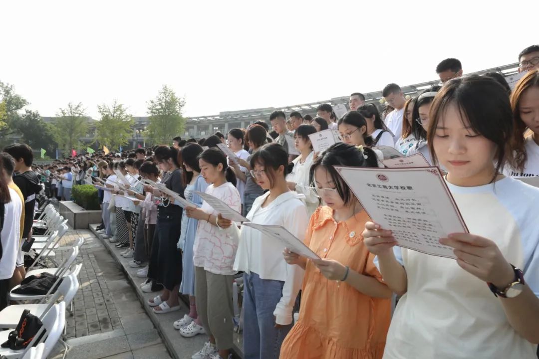 青春逢盛世,奋斗正当时。在大有可为的新时代,学校期待与你们——北工商的新主人们,携手探索、勇担使命、勇攀高峰,共同书写建设一流大学、一流学科的绚丽篇章!愿2023级新生不忘初心、牢记使命,在实现理想的道路上矢志不渝、笃行不怠,用蓬勃的朝气与必胜的信念,履行属于你们的青春誓言,为祖国、为人民、为人类谱出新的绚烂华章!