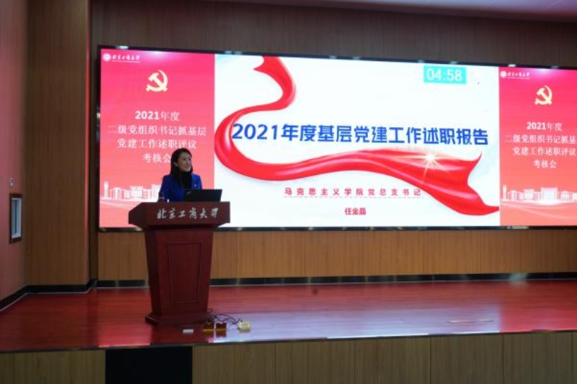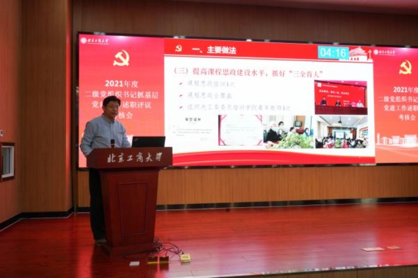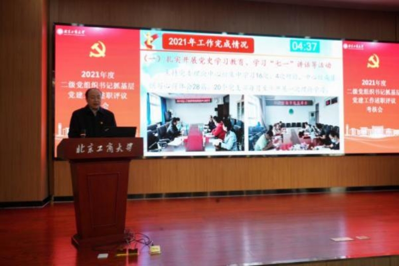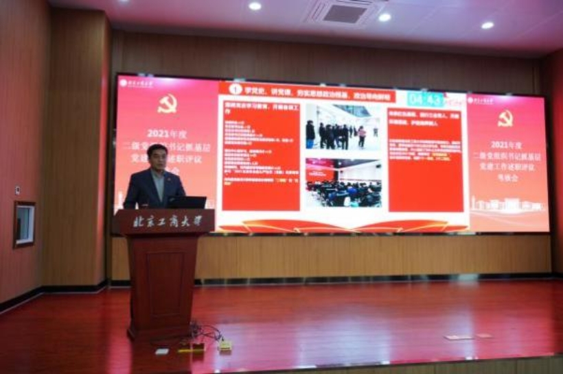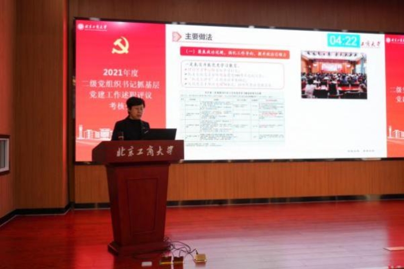 在述职评议考核会上,作为本单位抓基层党建工作第一责任人,现场述职的二级党组织书记以文稿演示的形式,汇报展示了2021年抓基层党建工作的主要做法、存在问题和下一步举措。
