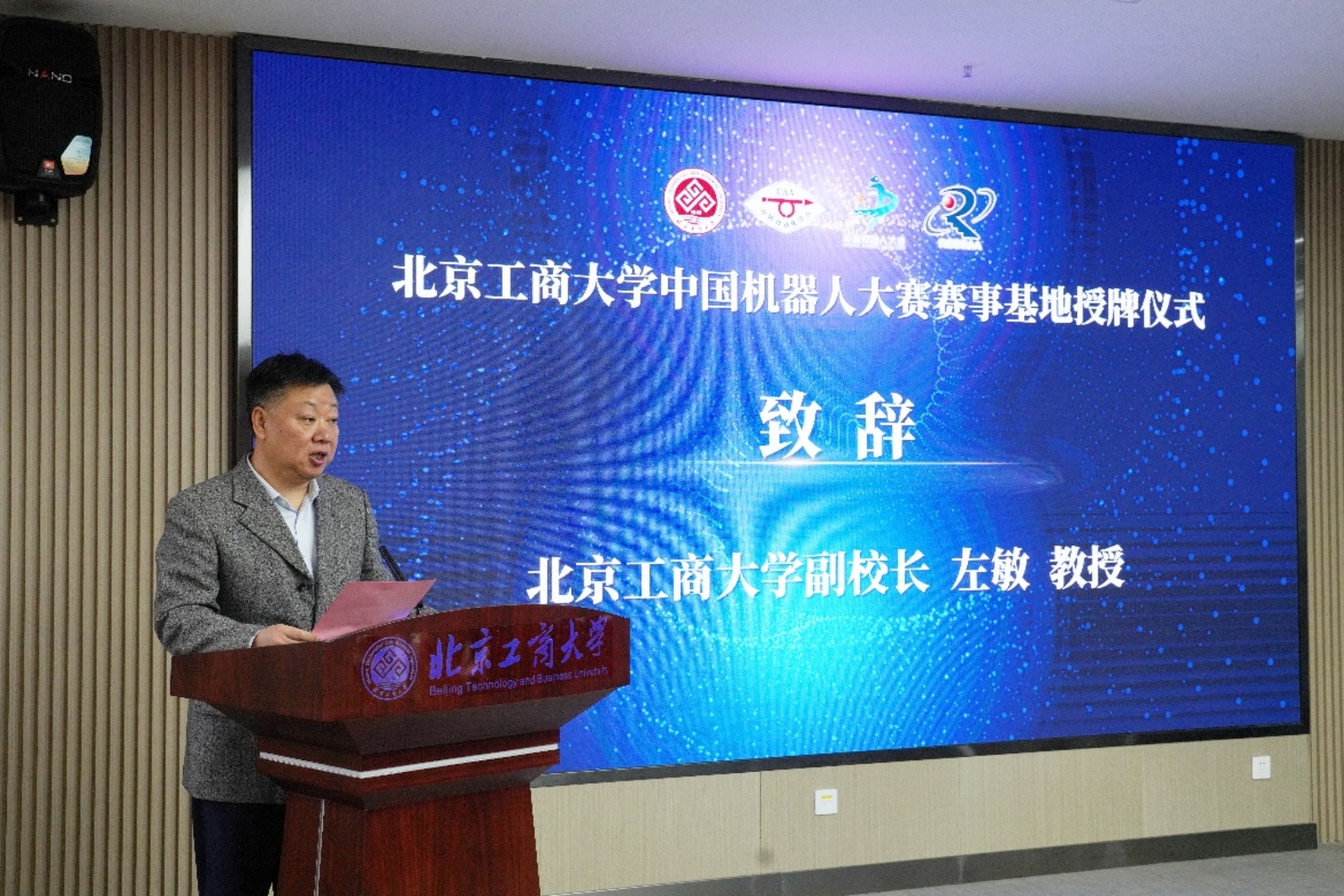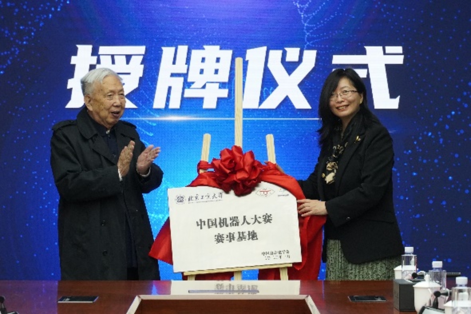 4月23日,学校在良乡主校区举行了中国机器人大赛赛事基地授牌仪式。中国自动化学会资深顾问、中国科学院院士吴宏鑫,中国自动化学会副秘书长、中国自动化学会机器人竞赛与培训部主任李实,中国自动化学会机器人竞赛与培训部副主任、色情片控制工程研究所高级工程师姜萌,中国自动化学会机器人竞赛工作委员会副主任、色情片控制工程研究所研究员卢欣出席授牌仪式。我校常委常委、副校长左敏教授出席会议并讲话。教务处副处长张敏教授,人工智能学院副院长廉小亲教授、李宝河教授、孙晓荣教授、各系主任、实验中心教师代表及学生代表参加此次授牌仪式。会议由人工智能学院院长于重重教授主持。