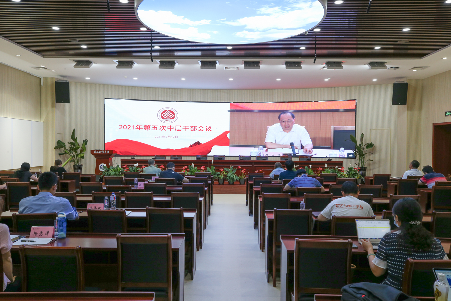 7月12日,学校在阜成路校区召开2021年第五次中层干部会,全面总结梳理本学期工作,对暑期各项工作及下学期重点工作进行安排部署。校领导黄先开、孙宝国、王伟、李中奇、欧阳媛、张耘、郑文红、龚六堂出席会议。党委书记黄先开主持会议。会议在良乡主校区设分会场,全体中层干部两校区参会。