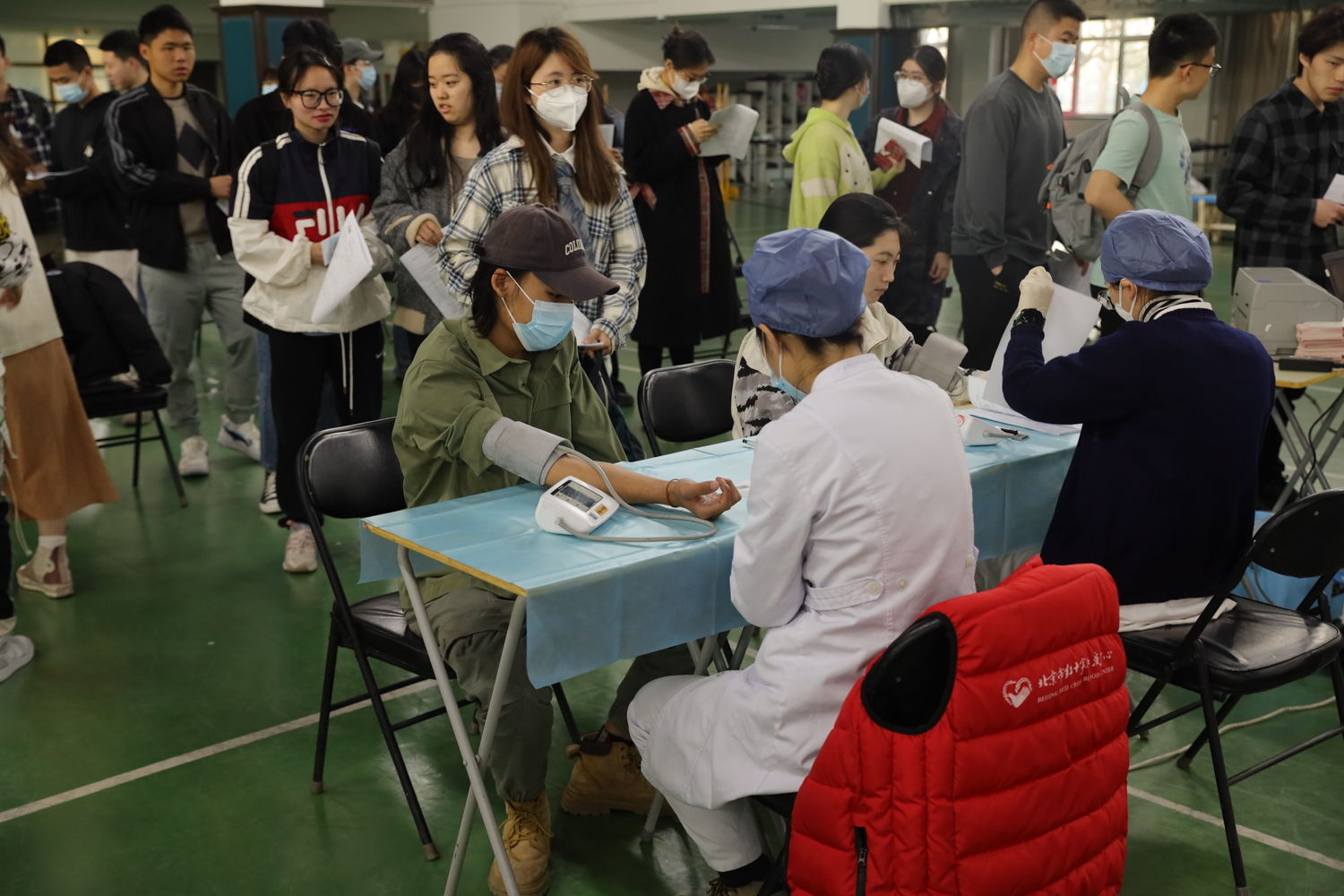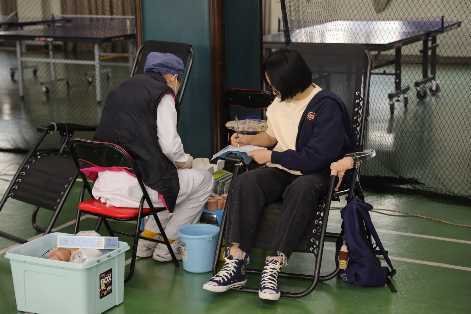 爱心点亮青春,真情诠释奉献经过红十字会学生分会的精心筹备,活动在3月30日早上8点如期开展。在活动现场,参与无偿献血的同学们在志愿者和医护人员的引导下,有序登记填表、测量血压、抽血化验,积极配合做好献血前的各项准备工作。验血合格后,大家依次进入献血区域,开始献血。第一次献血的同学者们脸上难免流露出了一丝紧张神情,但现场没有人退缩。汩汩殷红的血液汇聚,将点亮无数生命的希望。法学院法学224班的池砚湫表示:“这是我第一次献血,虽然有一些紧张,但一想到自己的血能够帮助到那些需要帮助的人就感到很值得!”