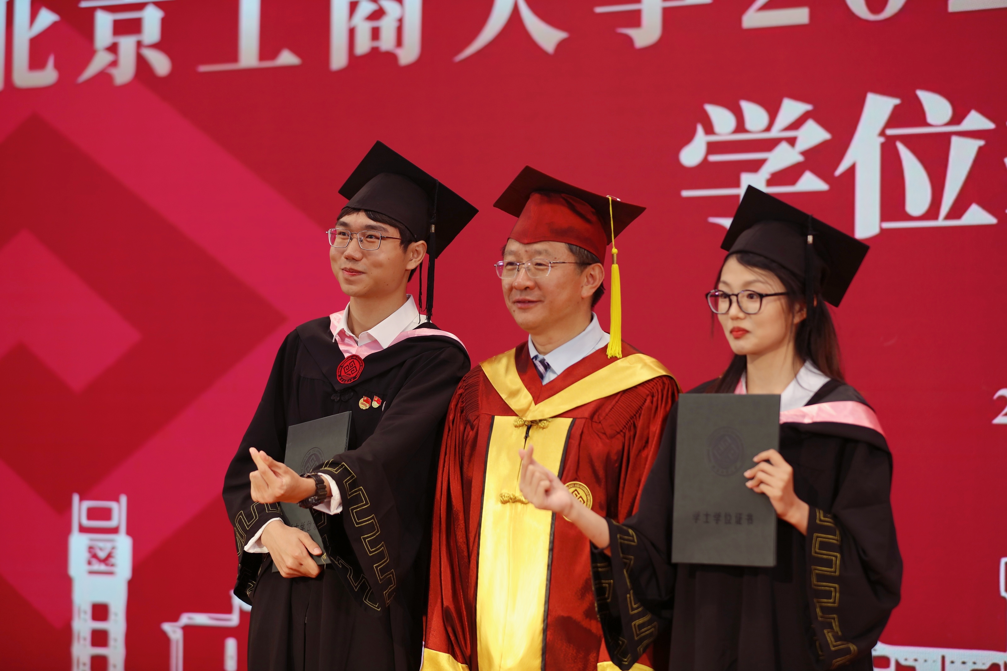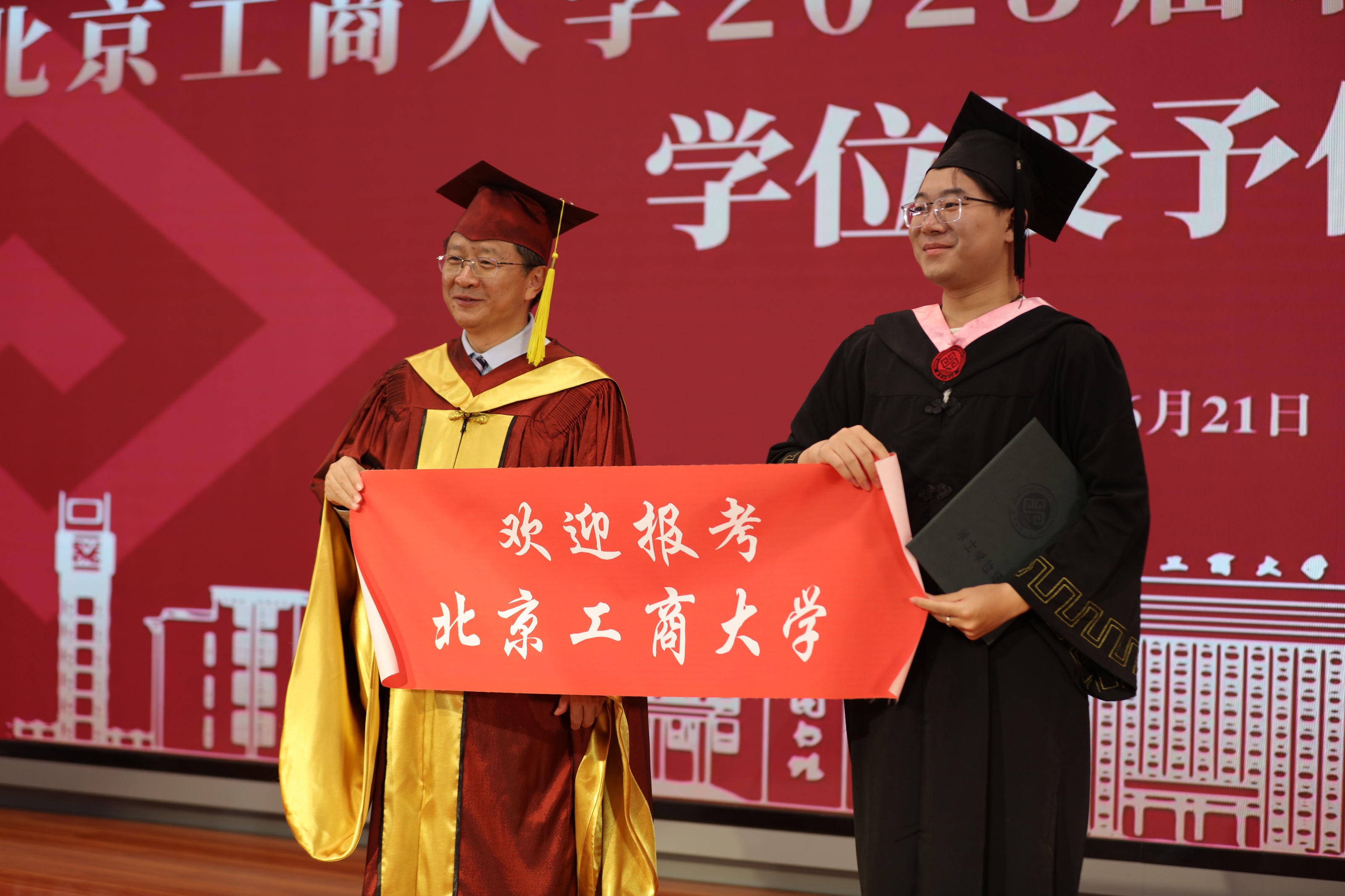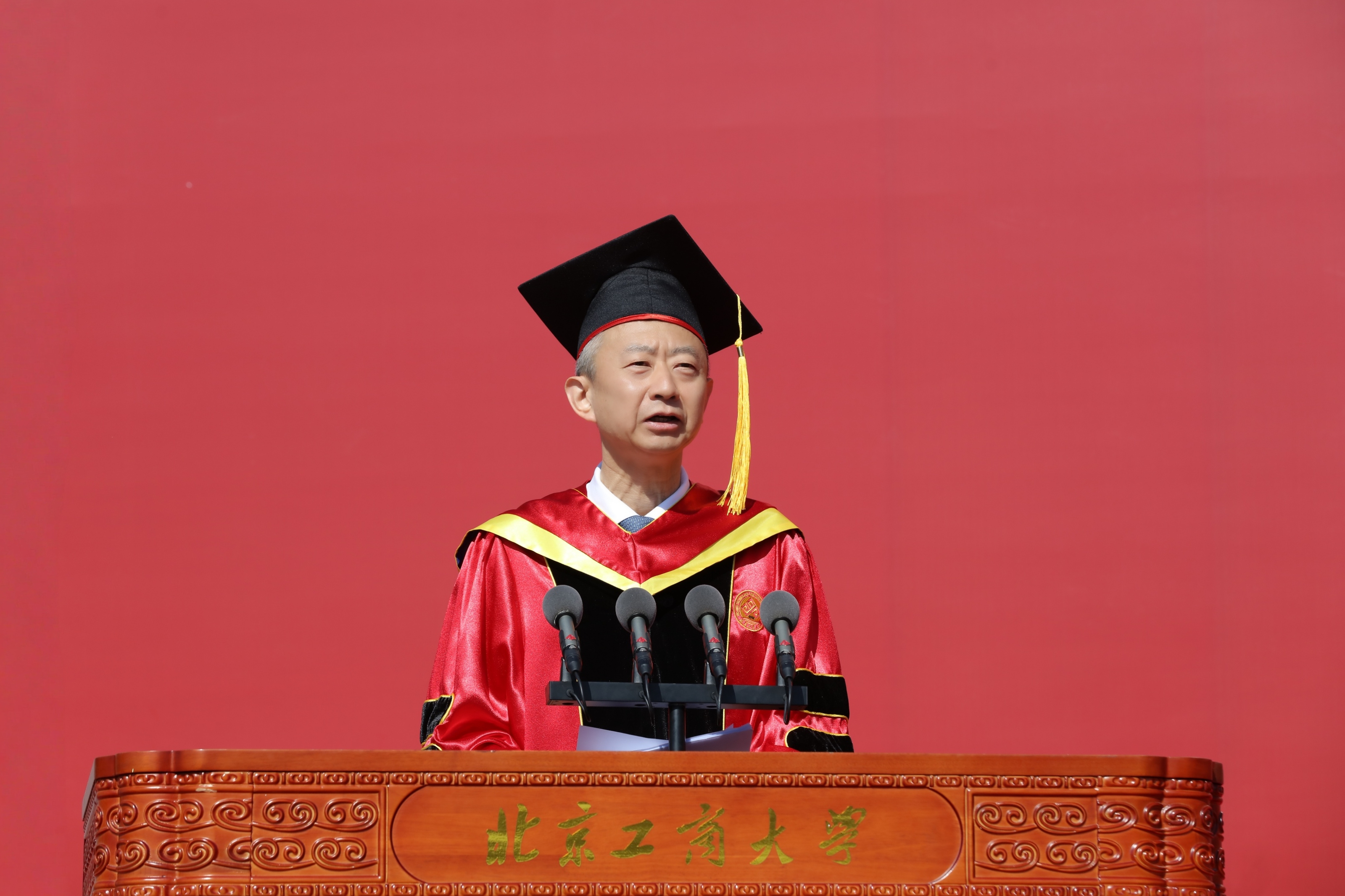 在即将踏上新征程之际,郭建华寄语毕业生们以“工商一体”的独特基因,锚定航向、勇立潮头:一是在时代变局中把稳“定盘星”,做清醒的破局者。“工商一体化”不仅是北工商人的学科底色,更是大家破浪前行的独特利器。希望大家将工科的系统性思维作为“导航仪”,将商科的动态视野作为“雷达屏”,既能用科技重构世界,更要让创新成果惠及众生。二是在创新浪潮中勇当“排头兵”,做硬核的开拓者。毕业不是学习的终点,而是新的起点。希望大家持续攻坚,勇于抢占技术制高点,让艰深的技术语言转化为商业蓝图,让硬核的科研成果焕发市场温度,在人工智能、工业互联网、数字孪生等新赛道,开辟工商协同的新范式。三是在跨界融合中构筑“生态圈”,做关键的连接者。要运用“工商一体化”的思维方式,在未来工作与学习中深度践行“技术研发→产品创新→商业模式→产业生态”的融合链路,用数据讲述中国智造的品质革命,连接中国与世界、当下与未来。四是在人生长跑中锻造“硬实力”,做终身的学习者。人生不是冲刺跑,而是耐力赛。希望大家构建技术功底、管理智慧与人文素养“三角竞争力”,努力用技术创造美好生活,以商业传递核心价值,在强国建设的星辰大海中,书写北工商人的壮阔篇章。