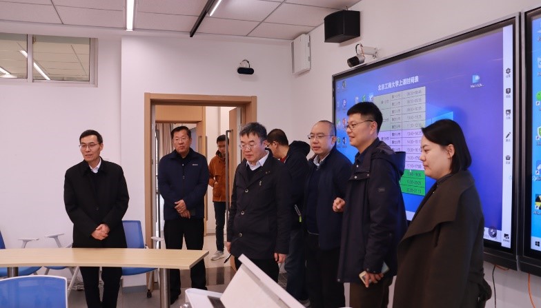 座谈会后,天津商业大学一行参观了良乡校区校史馆、数字未来中心和文二楼智慧教室。就教学数字化改革、校园信息化建设、校史及档案建设等内容进行考察。