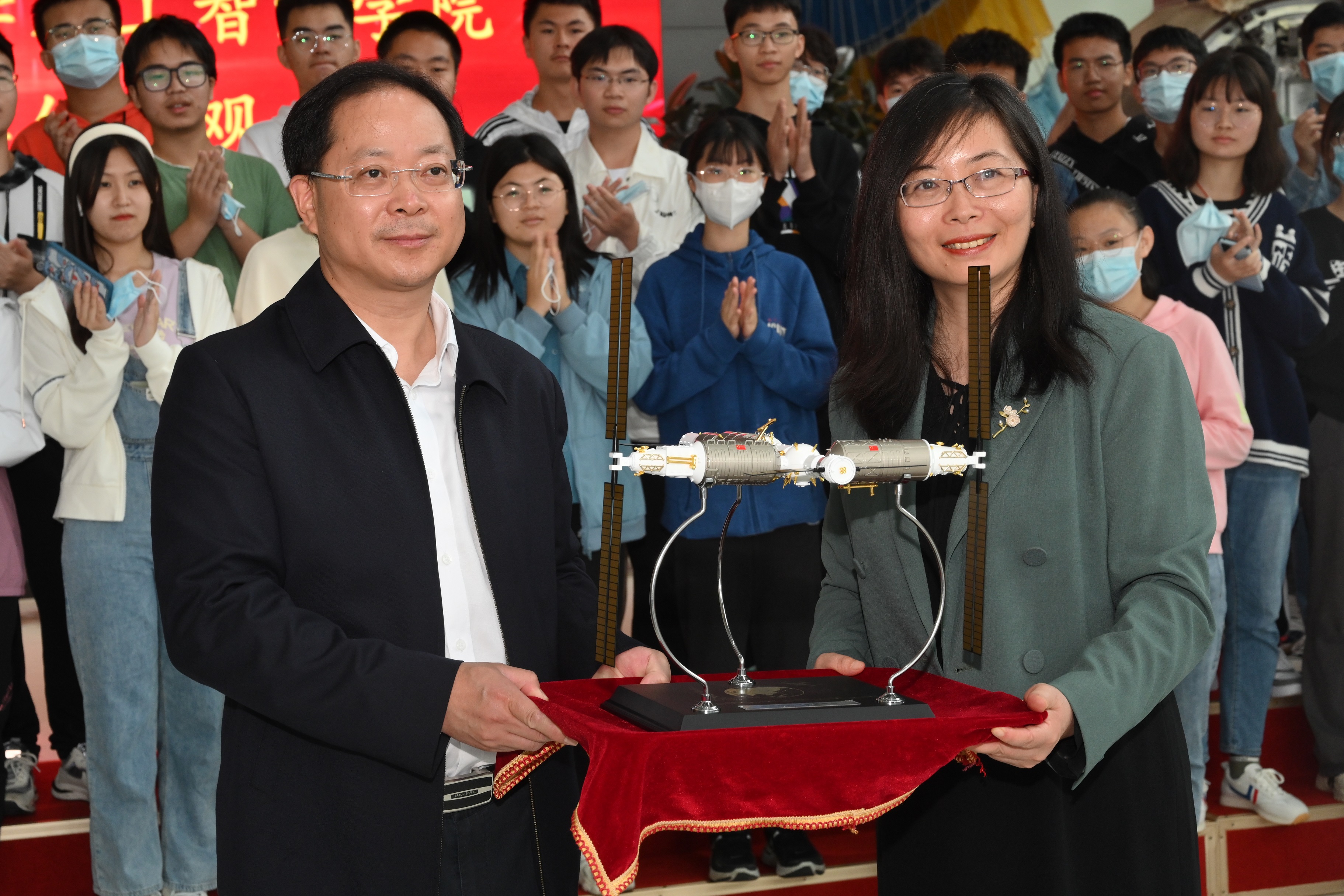 戚发轫院士向学生代表赠送了亲笔题写的寄语“仰望星空,脚踏实地”和亲笔签名的“空间站——神州十二号载人飞行任务纪念”邮册,林益明院长向学院赠送神州十二号模型。参加活动的学子们纷纷表示,通过这次参观,感受到了什么是大国重器、什么是大国利器,明白了学好专业知识的重要作用,更加坚定了爱国主义信念,真切地体会到作为新时代青年人所肩负的建设祖国的艰巨任务。