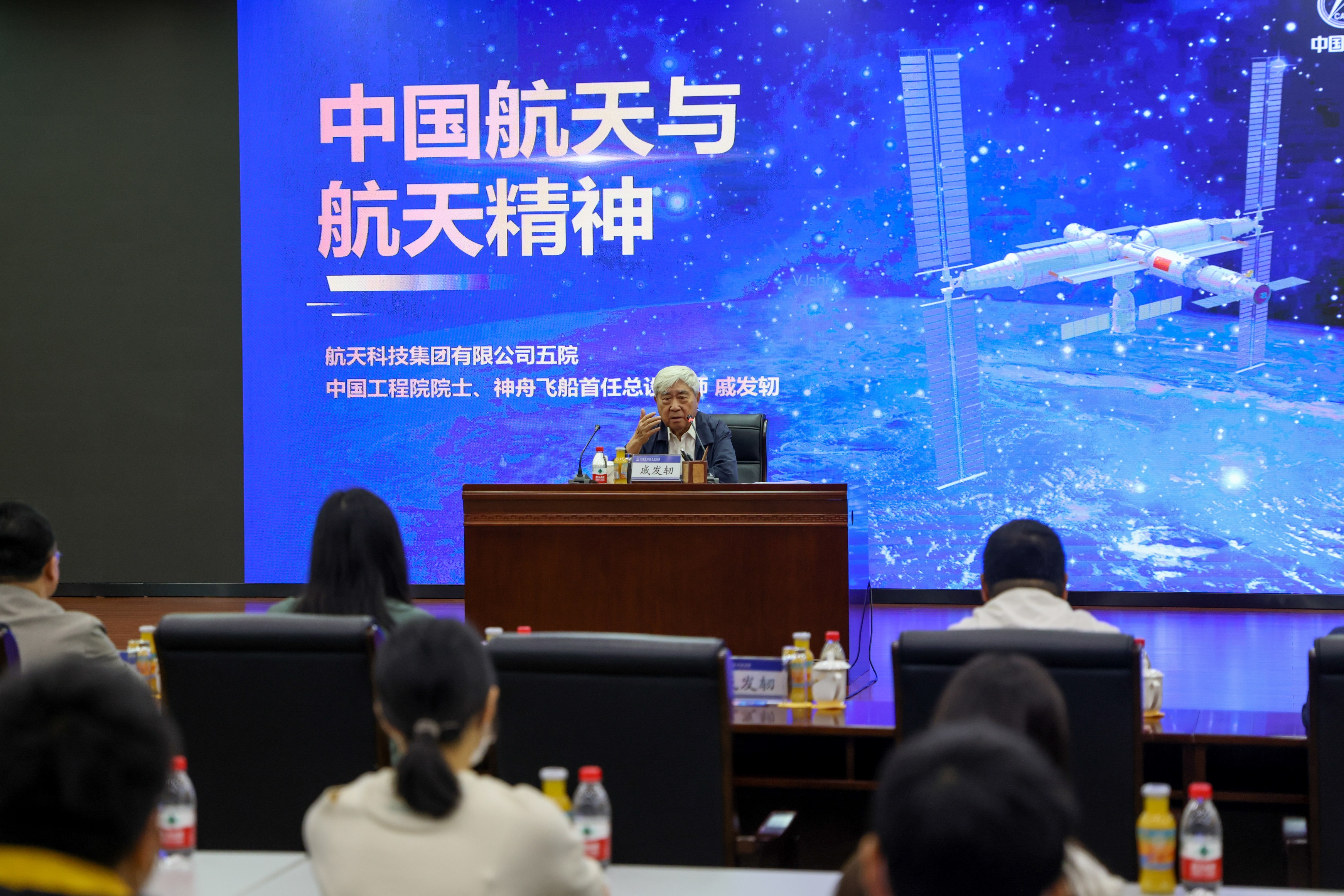 神舟一号到神舟五号总设计师、曾主持过东方红一号到东方三号卫星研制的戚发轫院士给师生们上了一堂以《中国航天与航天精神》为主题的生动的爱国教育课。戚发轫院士从“什么是天,我国为什么要发展航天事业”讲起,介绍了太空中的三种主要资源对我国发展的重要战略意义。他介绍中国航天发展历程,用亲身的经历和质朴有力的语言诠释了“特别能吃苦、特别能战斗、特别能攻关、特别能奉献”的航天精神和“热爱祖国、无私奉献,自力更生、艰苦奋斗,大力协同、勇于登攀”的“两弹一星”精神。他强调,青年学子要有一颗爱国心,要爱学习、爱专业、爱国家、爱民族;要仰望星空,脚踏实地,把爱国之心化为报国之行。现场学子用热烈的掌声对戚发轫院士表达了崇高的敬意。