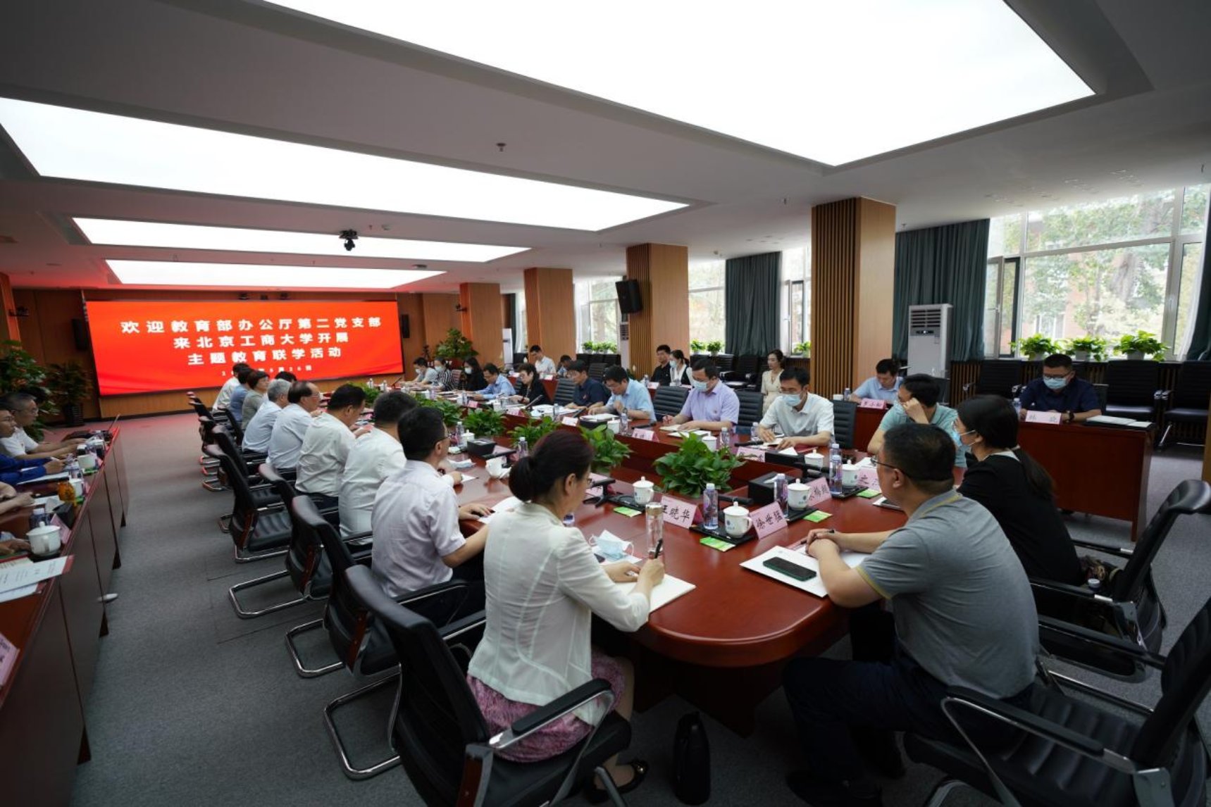 5月26日,为推动学习贯彻习近平新时代中国特色社会主义思想主题教育进一步走深走实、见行见效,教育部办公厅第二党支部来学校开展主题教育联学活动。教育部办公厅副主任张萍、苏大林,学校党委书记黄先开,党委副书记李中奇,党委常委、副校长郑文红、刘敏华、左敏和办公厅、学校40余名党员干部参加有关活动。