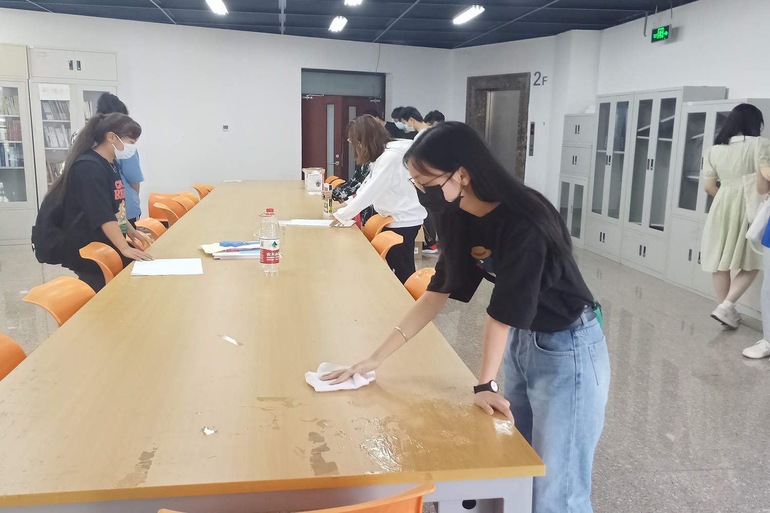 轻工科学技术学院、人工智能学院、生态环境学院、化学与材料学院将清洁活动与专业教育相结合,寓教于劳。在专业老师的悉心指导下,志愿者在认真清洁专业实验室和机房的同时,对实验室和机房的各项设施有了初步的认识,对未来的专业学习和实验奠定了良好的基础。
