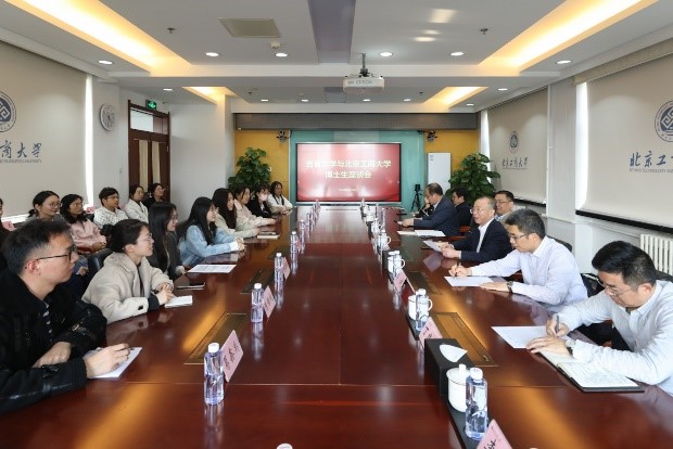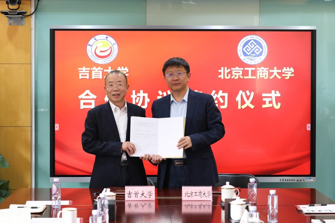 双方共同观看了我校宣传片。郭建华代表学校对黎奇升一行来访表示欢迎,介绍了学校的历史沿革、发展现状与奋斗目标,重点阐述了学校为加快创建“双一流”学科、全面建设高水平研究型大学作出的努力和取得的成效。他表示,近年来,学校锚定高水平研究型大学办学定位,聚焦国家和首都经济社会发展所需,按照“商科做强、工科做精、工商融合、双轮驱动”的建设思路,不断深化教育教学数字化转型,以数据科学与人工智能为链接,以人文社科为支撑,探索实施商科与工科主动对接、深度融合的方法和路径,努力推动形成全校上下一盘棋的发展局面。吉首大学作为湖南省高水平建设大学、湖南省“双一流”建设高校,在数学、旅游管理、轻工、食品等方面具有突出优势,双方具有较大合作空间和潜力。希望两校以此次合作签约为契机,深化全方位、多领域合作,推动两校共同发展、共赢未来,为高等教育强国建设贡献更大力量。