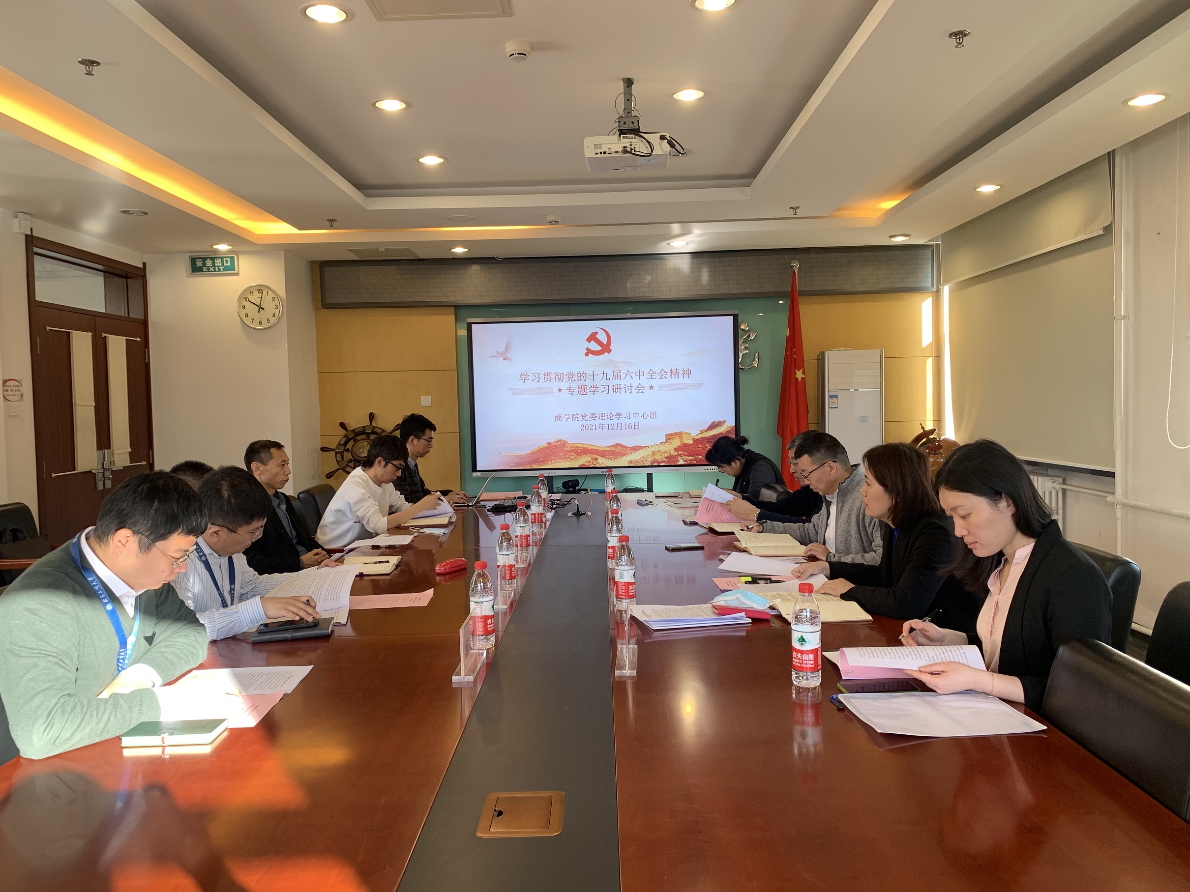 12月16日,商学院党委理论学习中心组在阜成路校区召开党的十九届六中全会精神专题学习会。学校副校长龚六堂到会指导。学院党委理论学习中心组成员和教师代表参加了会议,会议由学院党委书记张春萍主持。