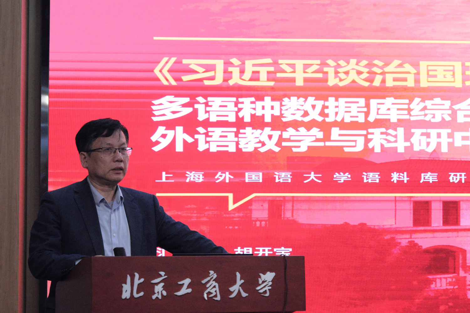 胡开宝教授以“《习近平谈治国理政》多语种数据库综合平台在外语教学与研究中的应用”为题进行专家报告。他介绍了数据库综合平台的开发背景和历程,阐释了平台三大模块(语料库、术语库、文献库)在外语教学与科研中的具体应用,探讨了平台建设的宗旨在于推动“三进”工作、推进课程思政、助力外语教研的数据化、可视化、智能化。随后,李晓倩博士对《习近平谈治国理政》多语种数据库综合平台进行演示。