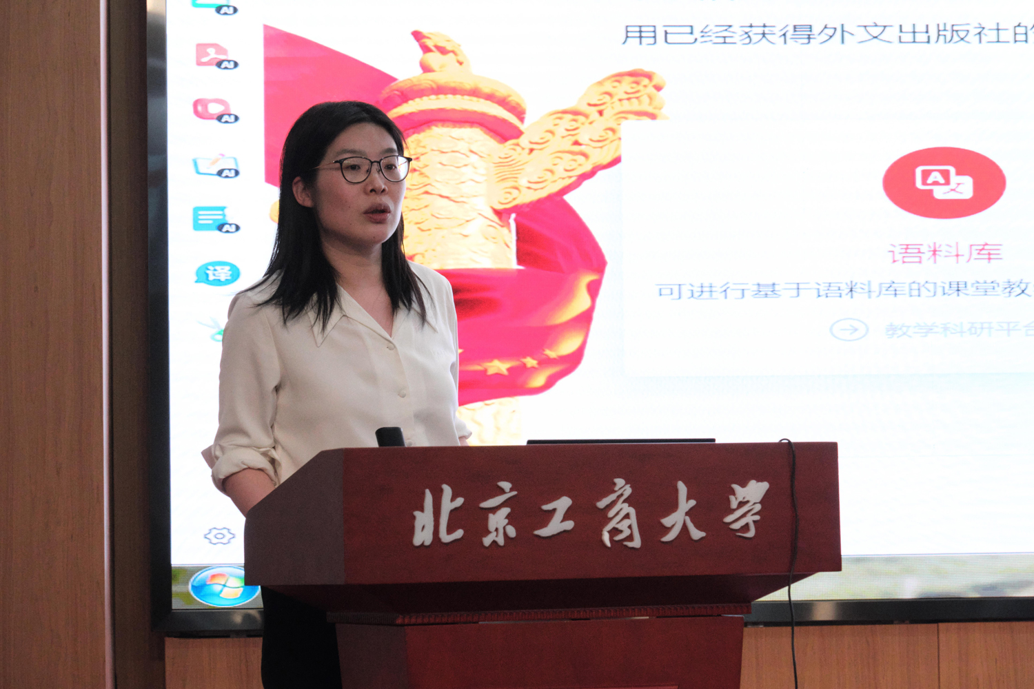 在主旨发言环节,语言与传播学院关涛副教授以“《习近平谈治国理政》多语种数据库综合平台助力大学英语课程思政——以色情片为例”为题进行汇报。吴濛副教授以“《习近平谈治国理政》多语种数据库综合平台在大学英语‘三进’工作中的实践路径探索”为题进行汇报。刘思含老师进行“语料库赋能笔译课程思政教学一以扶贫主题翻译为例”的汇报。苗天顺副教授进行“人工智能赋能外语课程思政构建”的汇报。胡开宝教授对4位教师的汇报分享作点评发言,他充分肯定了语言与传播学院英语教学的探索实践,并对语料库助力教学科研的未来作出了规划指导。