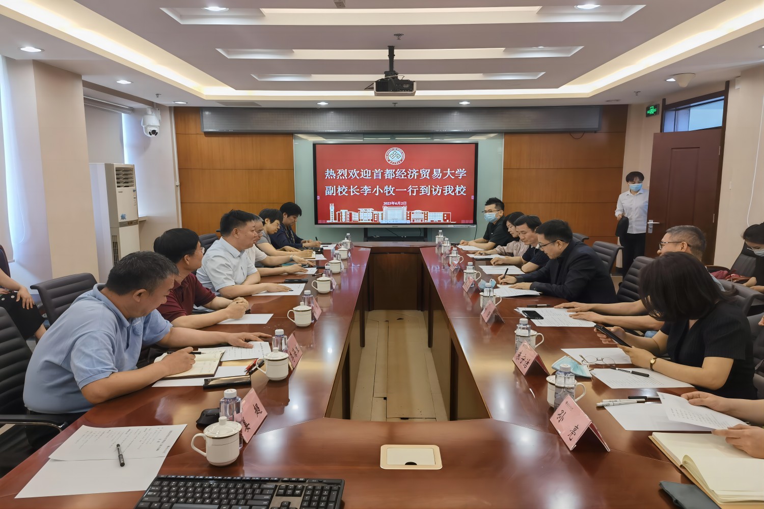 6月2日上午,首都经济贸易大学党委常委、副校长李小牧一行10人到访我校,就本科教学工作审核评估、本科人才培养及网络信息化建设等相关工作进行调研座谈。学校党委常委、副校长左敏主持座谈会。