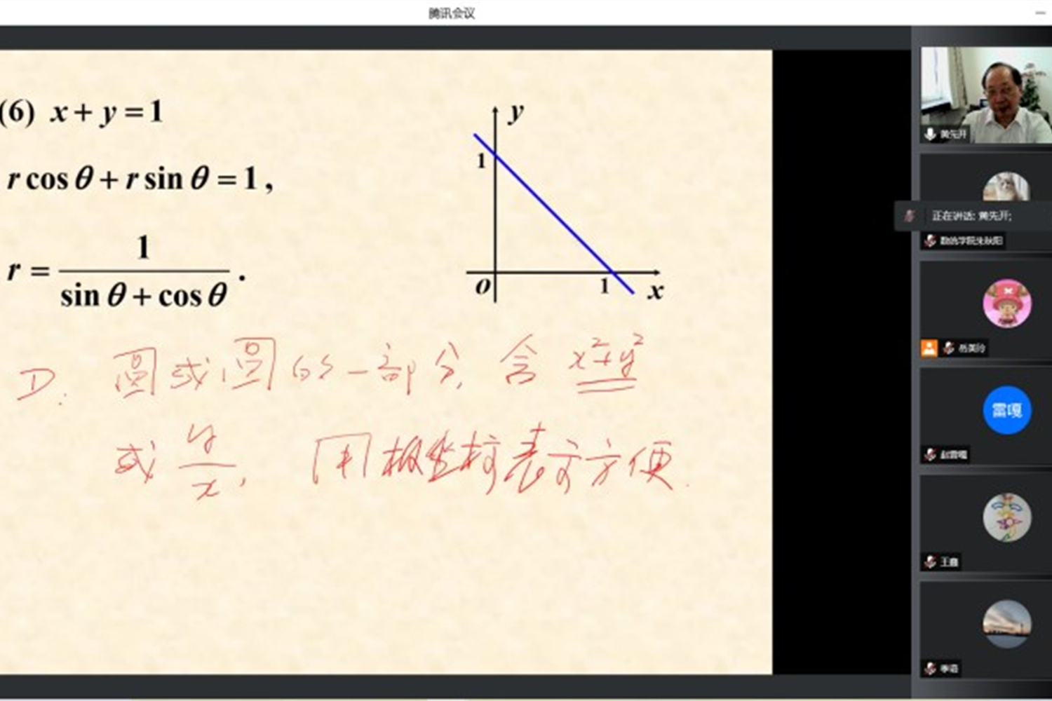 课堂尾声,黄先开教授嘱咐同学们做好课后作业和练习,强调即使线上教学也要多动手、勤练习,找到解题的规律,探寻数学的乐趣,培养解题的成就感。疫情来袭,共克时艰,此次线上授课全程清晰流畅,层层递进,详略突出,引人入胜,展示了一堂精彩的数学盛宴。此次观摩示范活动进一步促进了广大教师特别是青年教师教学能力的提升,为学院不断提高线上线下课堂教学质量提供了模范指引,学院将不遗余力,持续扎实稳步推进课堂教学工作。