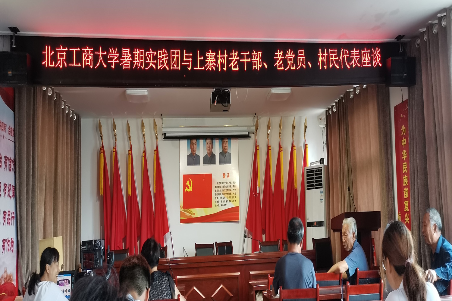 实践团同学们还参观了上寨村村史馆,详细了解了上寨村的发展历程,并与村里的老干部、老党员和村民代表举办了座谈会。“上寨村为什么能发展的这么好”是每一个实践团同学发自内心的提问。村中的老党员、老干部和村民代表用一个个真实的故事向实践团师生展示了上寨村党支部团结一心,带领勤劳朴实的上寨村民,一心一意谋发展的奋斗历史。让实践团的成员们真切的认识到“火车要想跑得快,还得车头带”,乡村要振兴,就必须充分发挥党员的带头作用,要把党建引领贯穿到工作中从而发挥党的组织优势,只有这样才能找准定位、明确方向、上下齐心求发展。