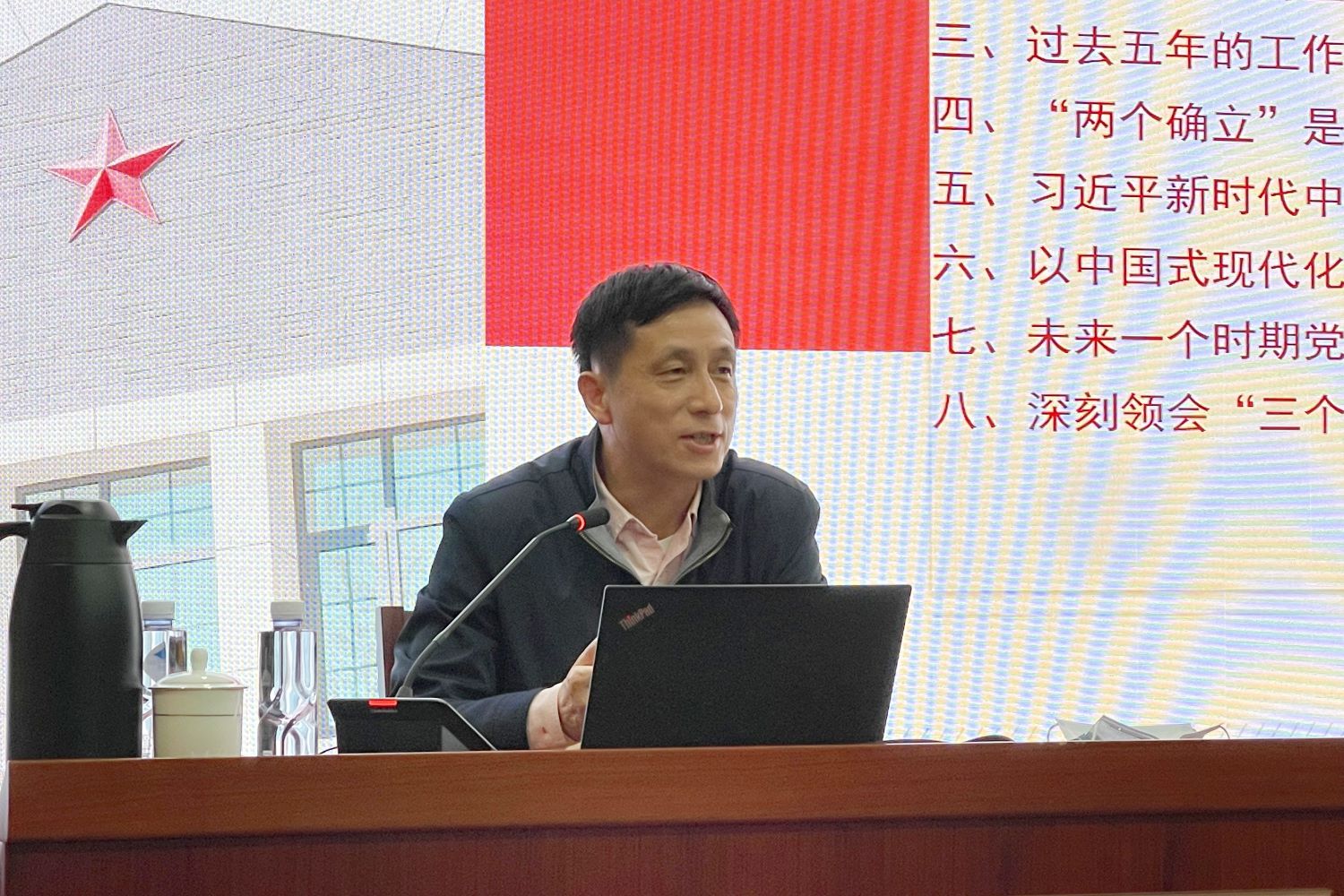 王伟以《深入学习深刻领会党的二十大精神》为题,从学习宣传贯彻党的二十大精神的重大意义,党的二十大的主题,过去五年的工作和新时代十年的伟大变革,“两个确立”是新时代最大政治成果、最重要历史经验、最客观实践结论,习近平新时代中国特色社会主义思想开辟了马克思主义中国化时代化新境界,以中国式现代化推进中华民族伟大复兴的使命任务,未来一个时期党和国家事业发展的战略部署以及深刻领会“三个务必”政治要求和“五个必由之路”规律性认识等八个方面,对党的二十大精神进行了全面宣讲和深入阐释。