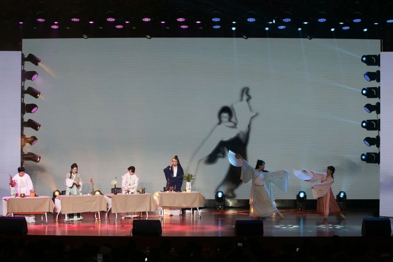 食品与健康学院教职工的《茶香舞韵》,婀娜多姿的舞蹈配上优美雅致的现场展示,展现了中华传统茶文化的独特韵味。