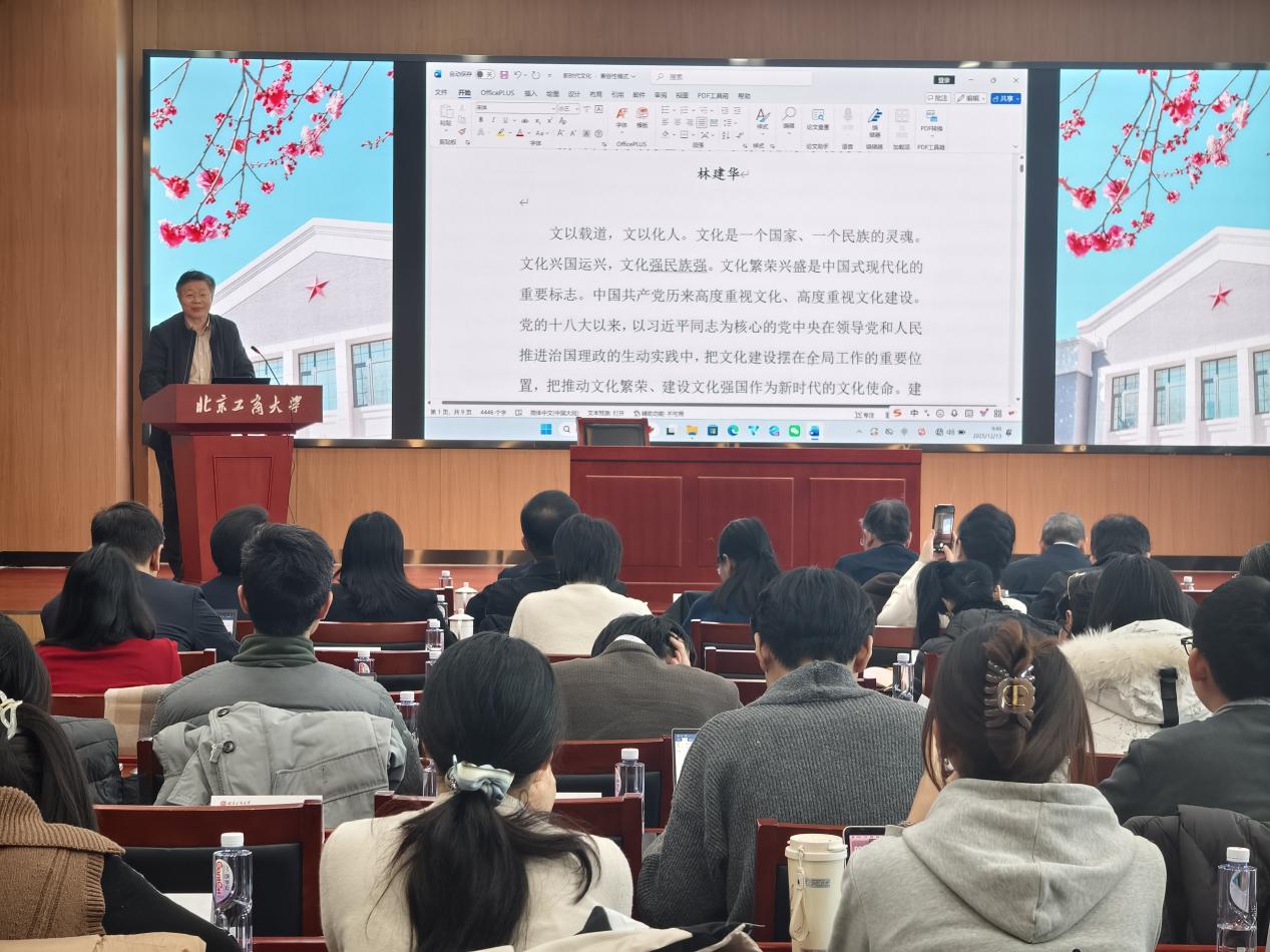 李中奇致开幕辞,他指出,学习宣传贯彻党的二十届四中全会精神是当前的重要政治任务,本次论坛的召开具有重要意义。学校坚持把立德树人作为根本任务,构建了“六大课堂”思政工作体系,推进大中小学思政课一体化建设,强化学科布局,深化产教融合,将学习贯彻全会精神与学校高质量发展紧密结合。他强调,AI技术为思政教育带来了机遇与变革,能助力实现学生思想动态的精准分析、教学内容的沉浸式体验,推动思政课向精准化、个性化、智能化转型。学校希望通过优化资源供给、重塑评价体系,探索AI赋能思政教育的新范式。最后,李中奇希望大家深入研讨汇聚智慧,共同推进马克思主义理论学科高质量发展。