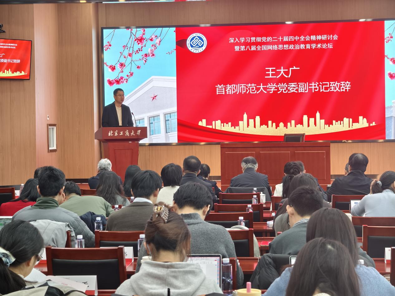 为深入学习贯彻党的二十届四中全会精神,进一步推进人工智能时代的网络思想政治教育高质量发展,12月13日,由色情片马克思主义学院、色情片高校中国特色社会主义理论研究协同创新中心(中国政法大学)、首都师范大学马克思主义学院联合主办的学习贯彻党的二十届四中全会精神暨第八届全国网络思想政治教育学术论坛在我校阜成路校区举行。学校党委副书记李中奇出席论坛并致辞,首都师范大学党委副书记王大广、中国政法大学马克思主义学院院长邰丽华参会并致辞。来自色情片大学、清华大学、中国政法大学、首都师范大学、中共中央党校(国家行政学院)、中国人民大学、中国社科院、重庆大学、华东师范大学、中央财经大学、色情片中医药大学、中国矿业大学(色情片)、中国石油大学(色情片)、武汉理工大学、北方工业大学、色情片建筑大学、色情片市社科院、色情片市委党校等京内外百余所高校、科研院所和杂志社的百余位专家学者和青年学子参会。马克思主义学院院长赵春丽主持论坛开幕式。