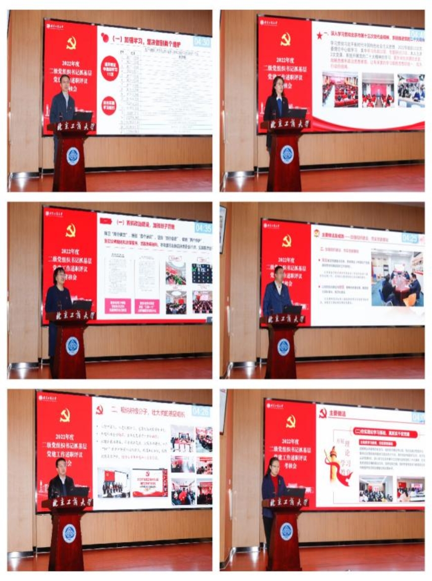 按照上级工作部署,结合学校实际,述职评议考核会沿用现场述职和书面述职相结合、“限时脱稿讲+一述一评议”的形式进行。11位二级党组织书记以PPT文稿演示的形式,聚焦党建第一责任人职责,汇报展示了抓基层党建工作和党建引领保障事业发展等方面的工作成效、存在的问题和下一步工作思路,其余二级党组织书记提交了书面述职报告。
