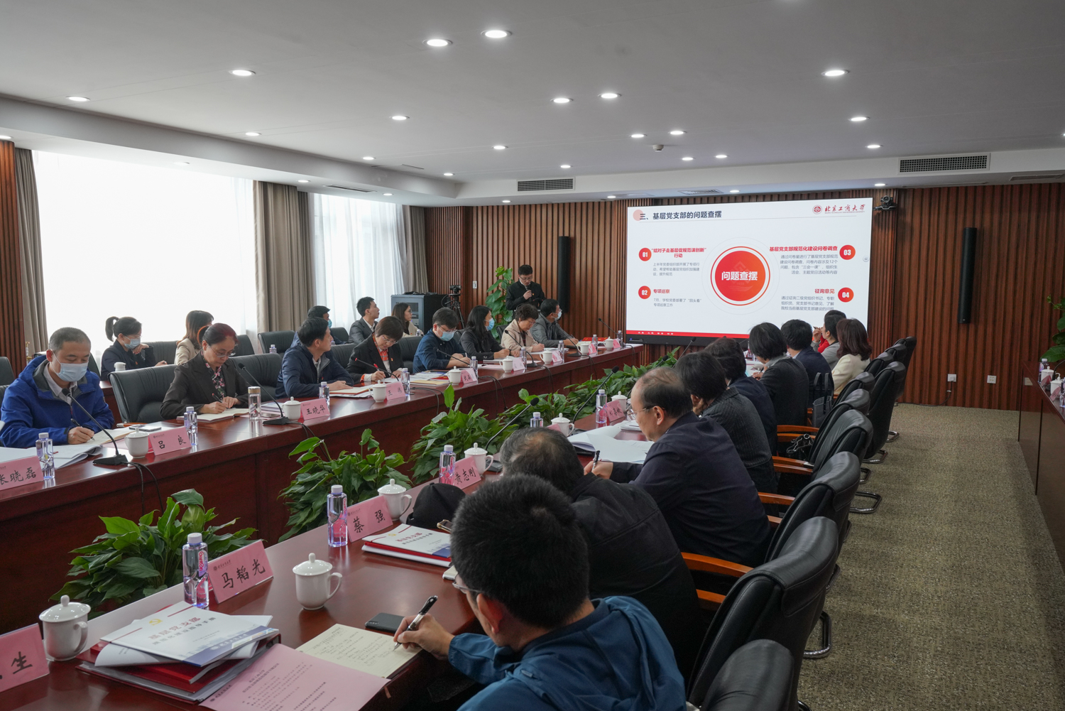坚持问题导向检视和整改存在问题是加强党支部规范化建设的基本前提。党委组织部副部长郑光查摆了当前基层党支部工作存在的问题。他运用文稿演示,结合“结对子 走基层 谋创新 促规范”行动实地走访、巡察反馈、问卷调查、征询意见等途径了解的情况,从加强规范化建设的重要性紧迫性、学校基层党支部的基本情况、基层党支部问题查摆、基层党支部的具体问题四方面,通过详实数据和具体案例,以点支部点单位通报、见事见图讲解的方式,精准分析个性问题、汇总梳理共性问题,明确整改提升方向。