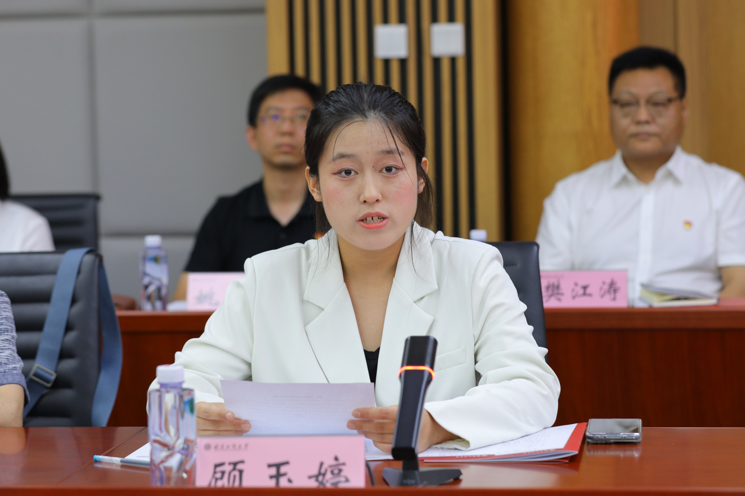 “光荣在党50年”的老党员代表秦艳梅,学校先进基层党组织代表、食品与健康学院党委书记郑喜姣,学校优秀党务工作者代表、经济学院保险系教师党支部书记吉彩红,学校优秀共产党员代表、计算机与人工智能学院物理系教师李熊,以及新党员代表、商学院物流221班学生顾玉婷分别作交流发言。发言代表立足自身角色和本职本岗,分享了基层党建工作的典型经验和践行共产党员初心使命的鲜活实践,表达了永远听党话、跟党走的坚定信念以及为学校事业发展奋楫笃行的强烈决心,生动展示了我校共产党人在教书育人一线勇挑重担、在科技攻关前沿勇攀高峰、在重大任务中勇立潮头、在在党50年的奋斗生涯里勇毅前行的感人事迹和动人风采,充分彰显了学校师生党员的坚定信念和有为担当。