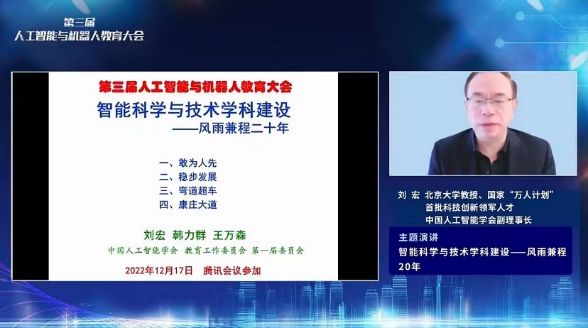 12月17日,由中国教育发展战略学会人工智能与机器人教育专业委员会主办,我校人工智能学院与中关村互联网教育创新中心联合承办的“第三届人工智能与机器人教育大会”在线上举办。大会邀请了人工智能与机器人教育行业相关的政府部门及行业组织领导、专家学者、大中小学教师、企业家、行业媒体等社会各界人士,共谋人工智能与机器人教育改革路径,群策群力推动人工智能产业提升与人才培养模式的创新发展。搜狐教育对本次大会进行了全程直播,累计近30万人观看了本次大会的精彩报告。我校党委常委、副校长刘敏华出席会议并致辞,人工智能学院师生近300人参加了此次会议。