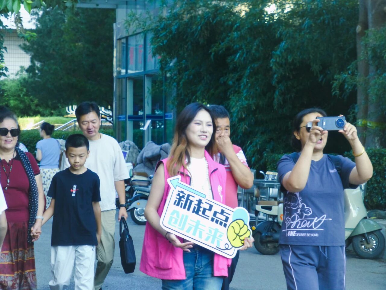 迎新点人流如织,新生在各展台完成报到后,纷纷在操场、礼堂、耕耘楼前举起手机,将这一刻的憧憬与期待永久珍藏。新生们还纷纷与家长打卡合影,定格人生重要时刻,脸上洋溢着青春的笑容,眼中闪烁着对大学生活的憧憬。请尽情展露笑容、畅想未来吧,北工商是你们放飞梦想的地方!